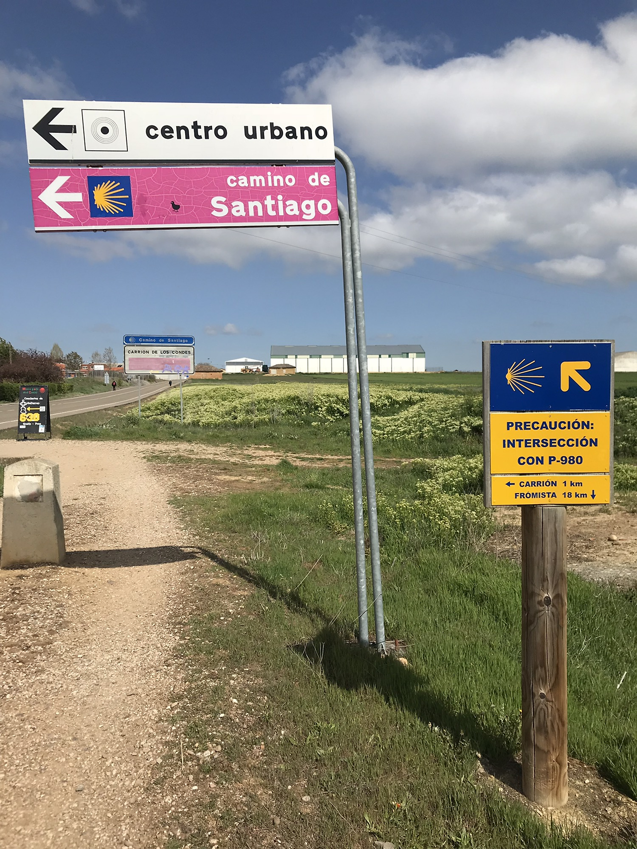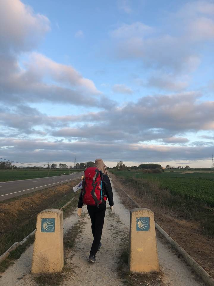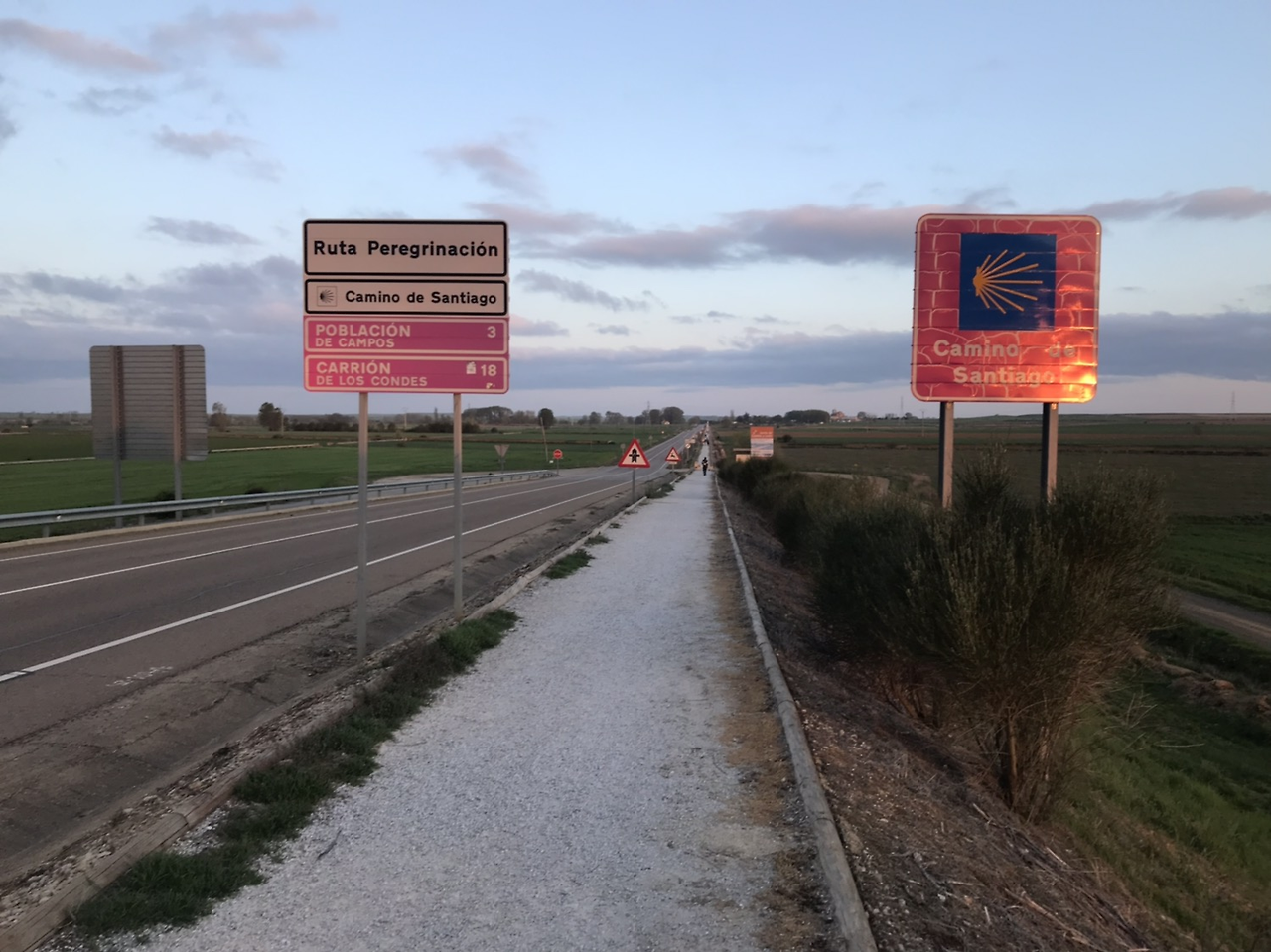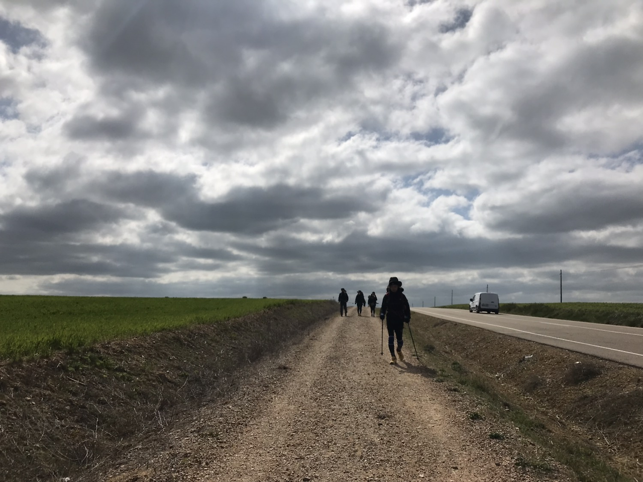 오늘은 다시 누나들과 JC와 함께 걸었다. 오랜만에 뭉쳤다. 까리온으로 가는 길은 왼쪽은 도로인 직선 길이라 어렵지 않았다. 가면서 오랜만에 서로 사진도 찍어주고, 그림자 사진을 통해 우리의 흔적도 남겼다.