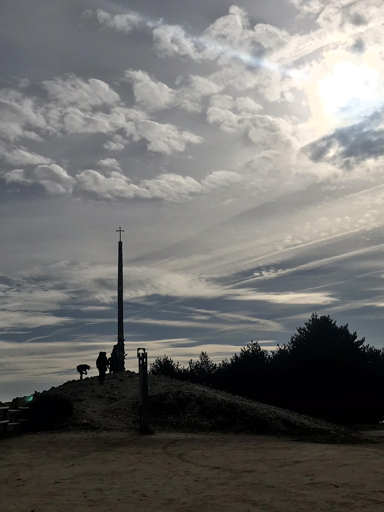 오늘은 프랑스길에서 두 번째로 산을 오르는 날이다. 그 산에는 '용서의 언덕'처럼 순례길에서 굉장히 상징적인 '쿠르스 데 페로'라는 곳이 있다. 높은 철 십자가로 된 이곳은 죽음을 상징하는 곳으로 많은 사람들이 이곳에서 자기 품 안에 있는, 그동안 놓아주지 못했던 것을 놓아주고 온다. 대체로 죽은 사람의 사진, 죽은 아내의 결혼반지, 등등 여러 가지가 있다.
