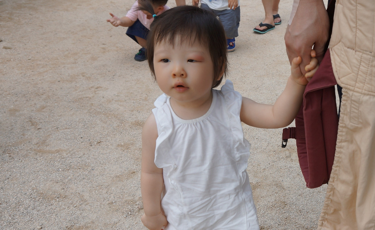 첫째가 돌이 막 지났을 무렵의 사진이다. 이 지경이 되어 밖에 나가면 사람들은 "어머!" 하며 안타까운 표정으로 우리를 쳐다본다.
