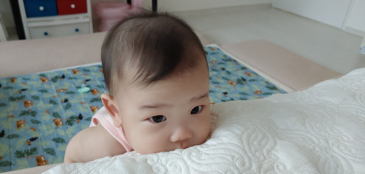 5. 한 2주 전까지만 해도 기어 다니는 게 힘겨워 보였다. 무릎을 사용하지 않고 거의 팔 힘으로만 기어다녔다. 그런데 이제 제법 무릎을 움직이며 기어 다닐 줄 알게 된 것 같다. 움직이는 속도도 훨씬 빨라졌다. 잠시만 한 눈을 팔아도 전혀 다른 곳으로 가 있다. 엄한 걸 만지거나 입에 넣지는 않을지, 잘 지켜봐야 한다.