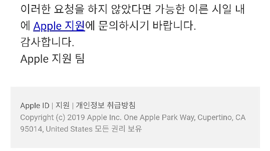 "해당 이메일과 이메일을 보낸 사람 모두 Apple과 관련이 없습니다. 해당 이메일은 피싱을 시도한 이메일입니다. 이런 이메일은 사용자를 속여 웹 사이트를 방문하게 하려는 데 그 목적이 있습니다."