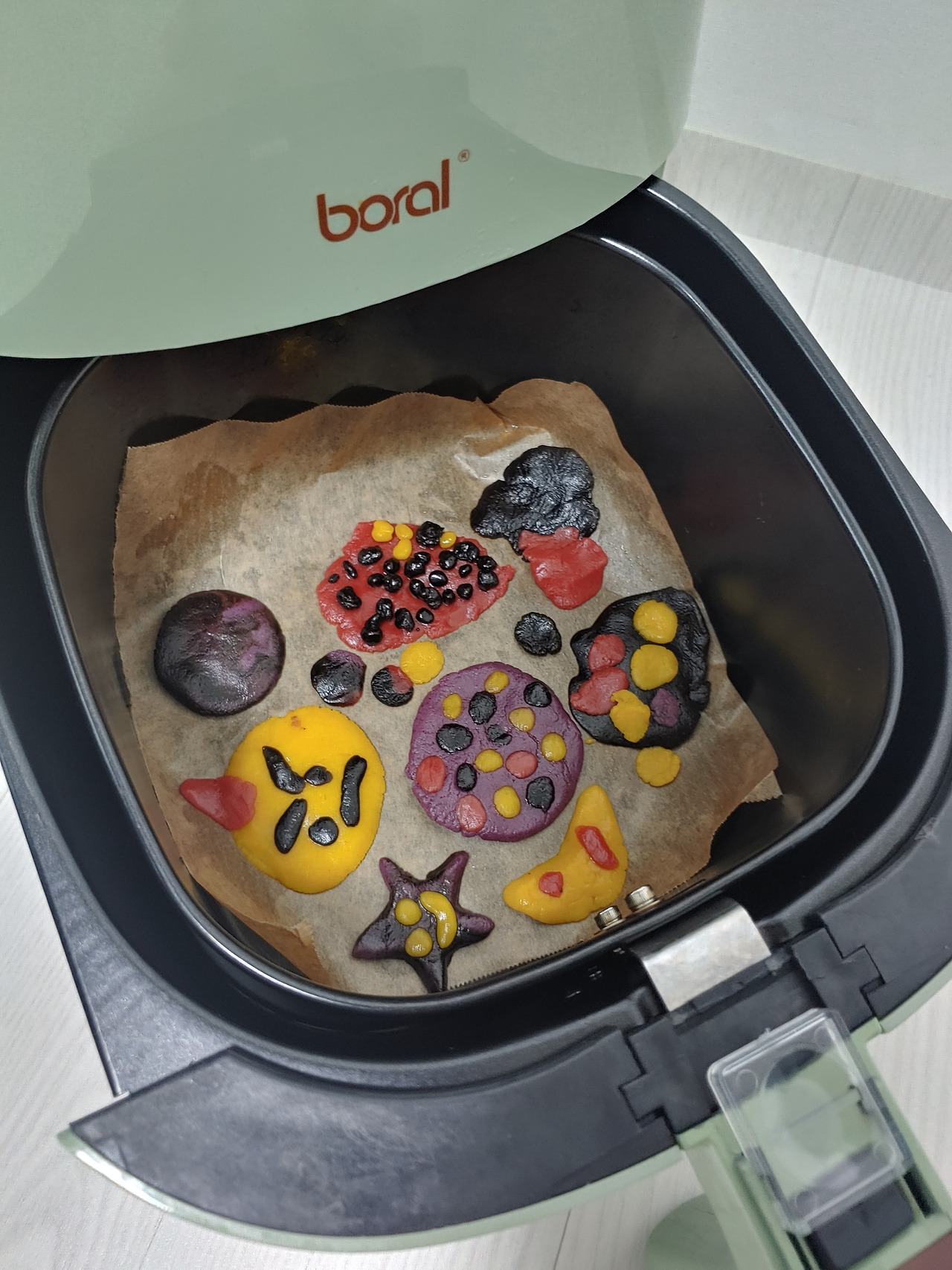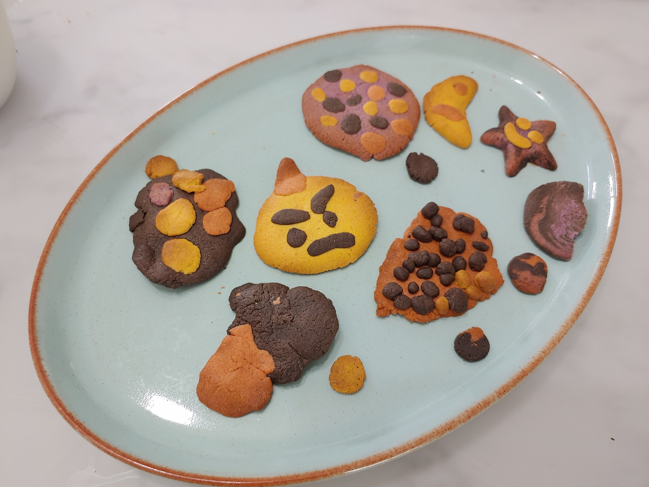 적당한 두께로 빚은 다음 프라이팬이나 오븐, 에어프라이어에 구우면 끝. 시중에 파는 쿠키같이 예쁘게 만들진 못했지만 맛은 괜찮았다.