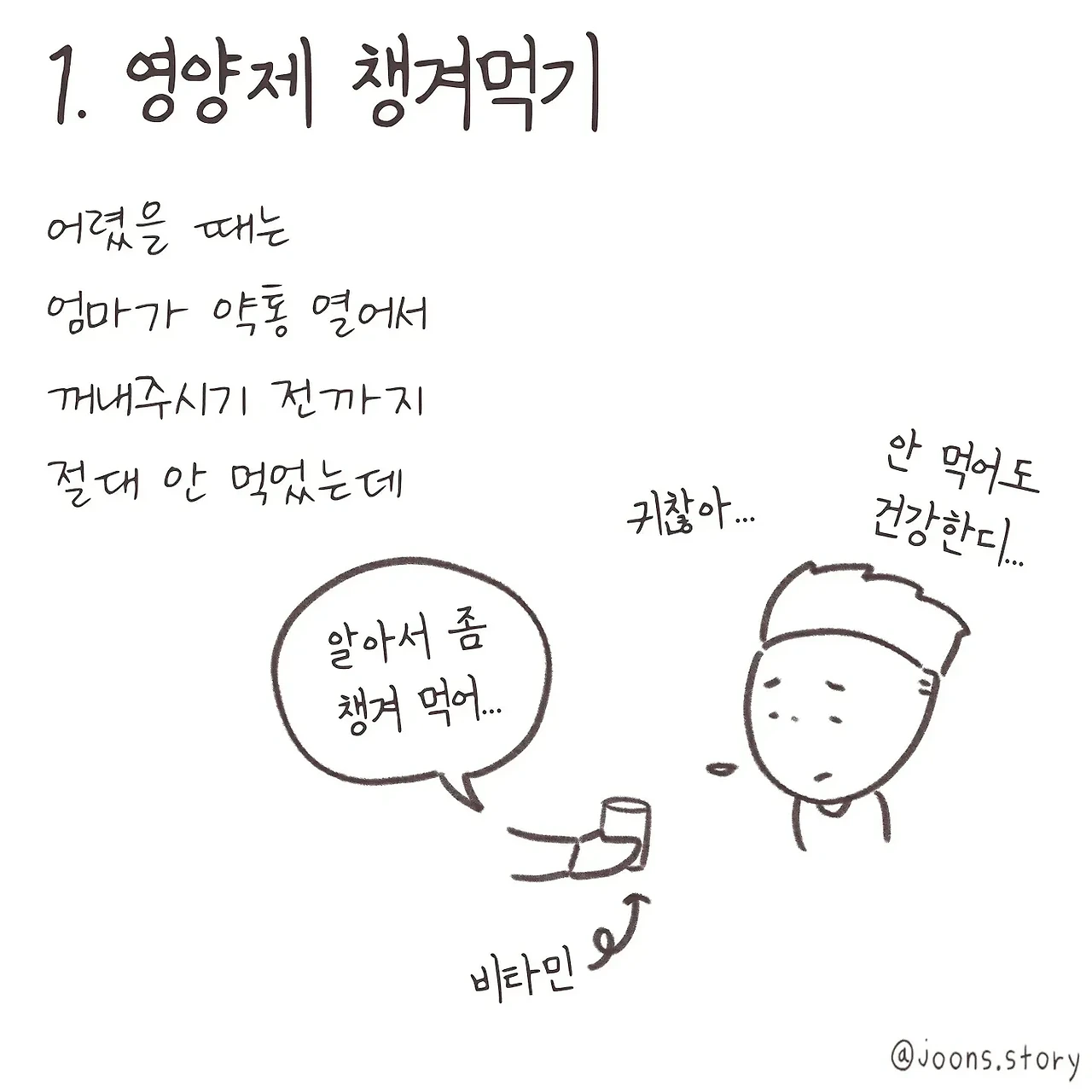 어릴 적 어머니께서 말씀하실 땐 꼼짝도 안 했었는데, 이제는 누가 시키지 않아도 알아서 하고 있는 일들이 있다.