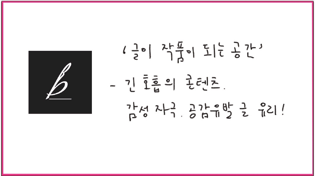 브런치의 경우는 완전 정 반대인 것 같아요. 브런치의 슬로건이 뭔지, 혹시 아시나요? 글이 작품이 되는 공간이에요. 브런치라는 서비스는 애초에 그런 방향으로 시작이 된 겁니다.