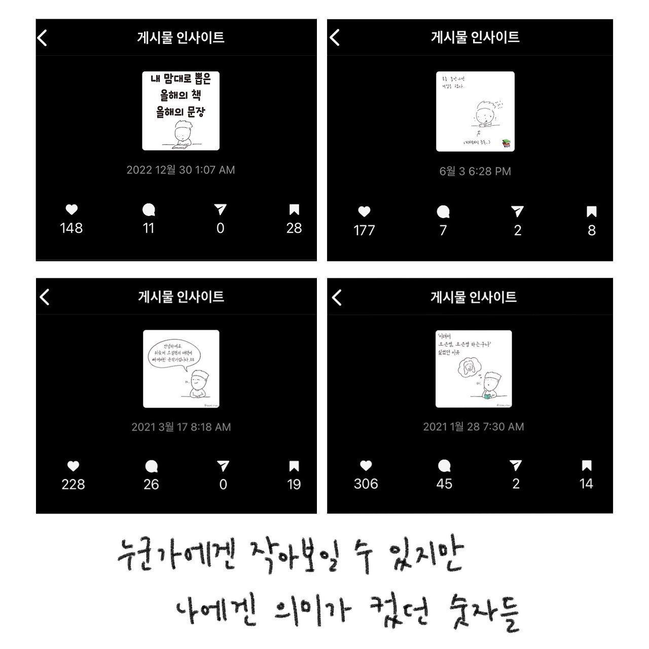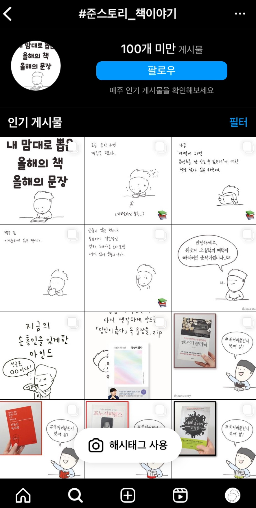 경험상, 특히 인스타그램 사용자들이 그랬다. 책을 소재로 한 일상툰을 올리면 다른 것보다 게시물 저장이나 공유 수가 더 많은 편이었다.