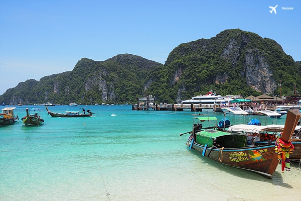 숙소에서 꽤 먼 거리의 부두에서 피피섬으로 출발하는 배로 예약해 줬다.