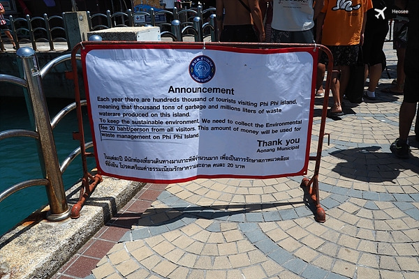 섬에는 들어가는 입장료 "20밧"을 내야 했다.