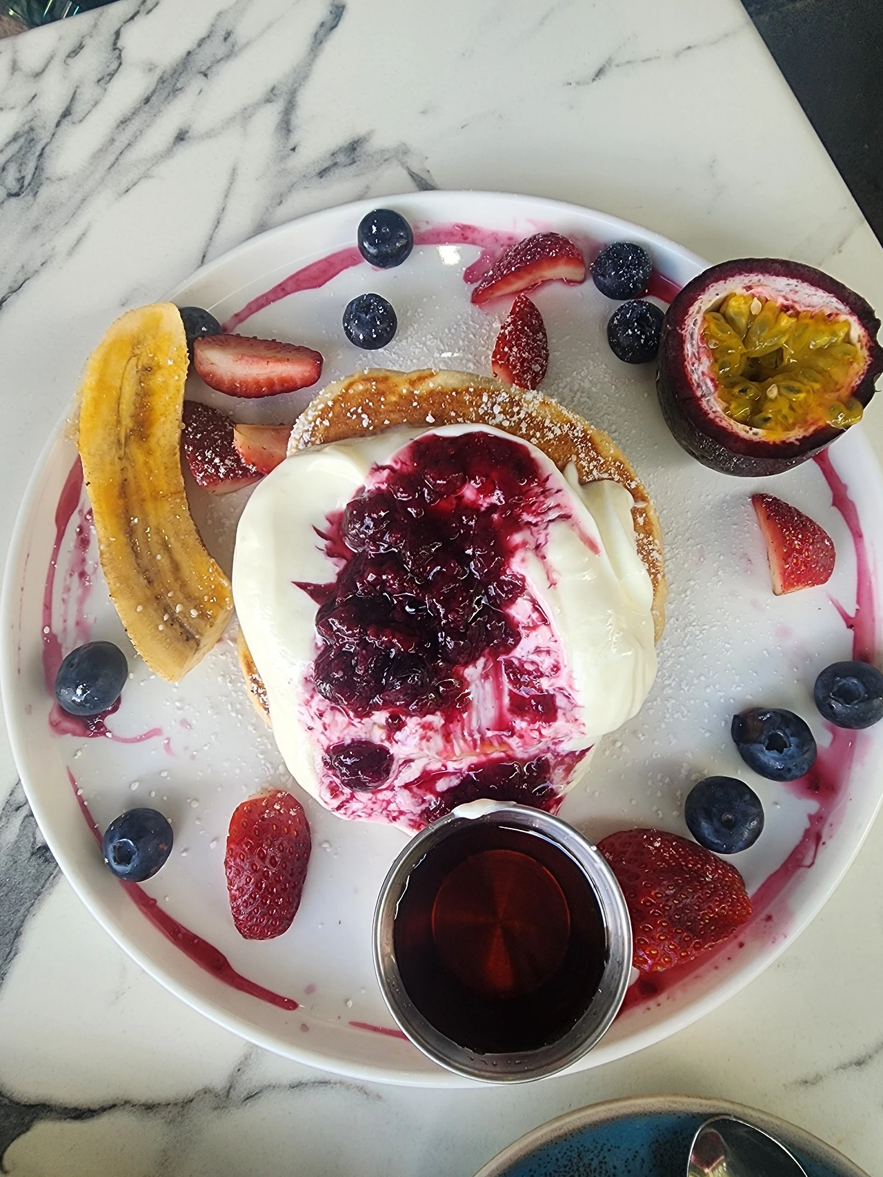 꽤나 맛있었던 시티의 한 브런치 카페의 커피와 핫케이크!