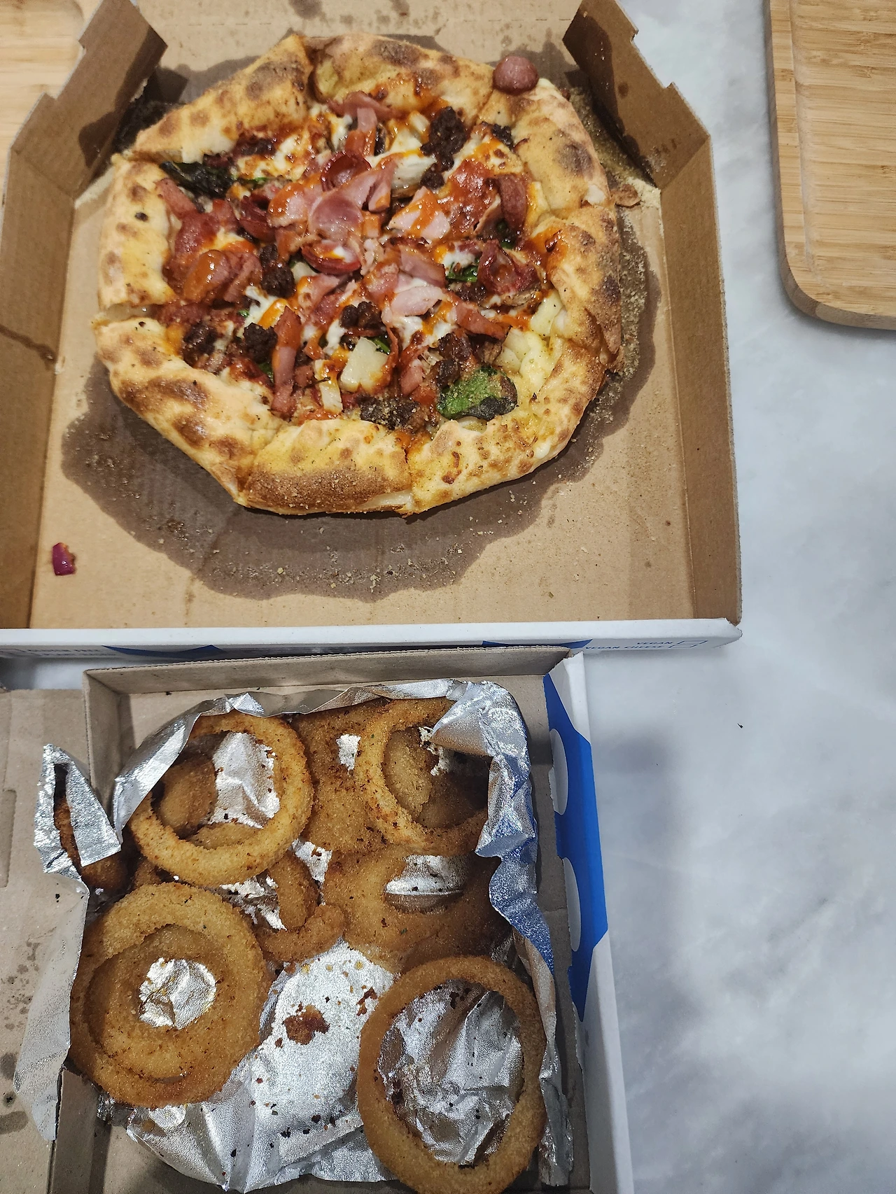 요건 남자친구가 픽업해온 피자헛의 피자와 어니언링이다 ~