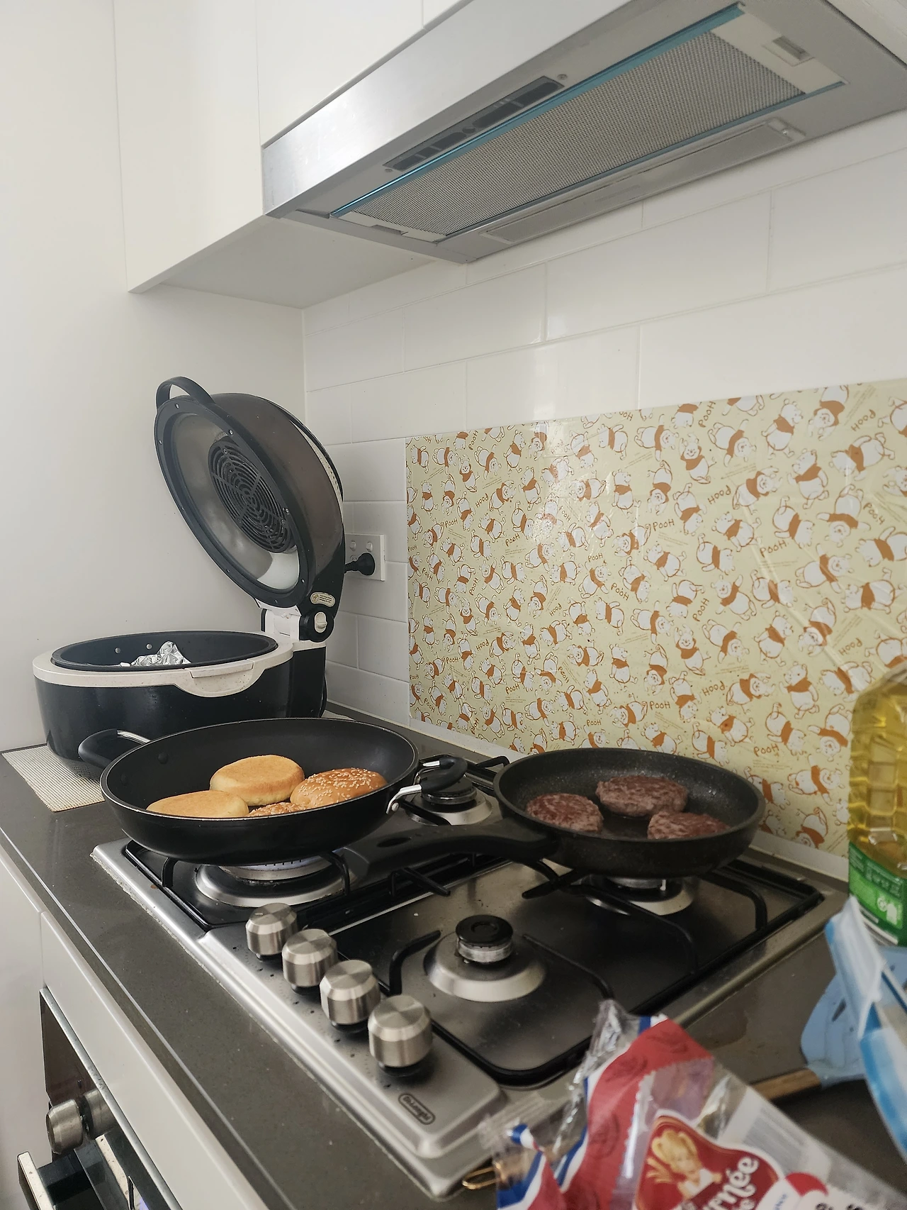 이건 내 친구가 한국에서 놀러왔던 날, 친구와 나를 위해 남자친구가 요리해주는 모습이다