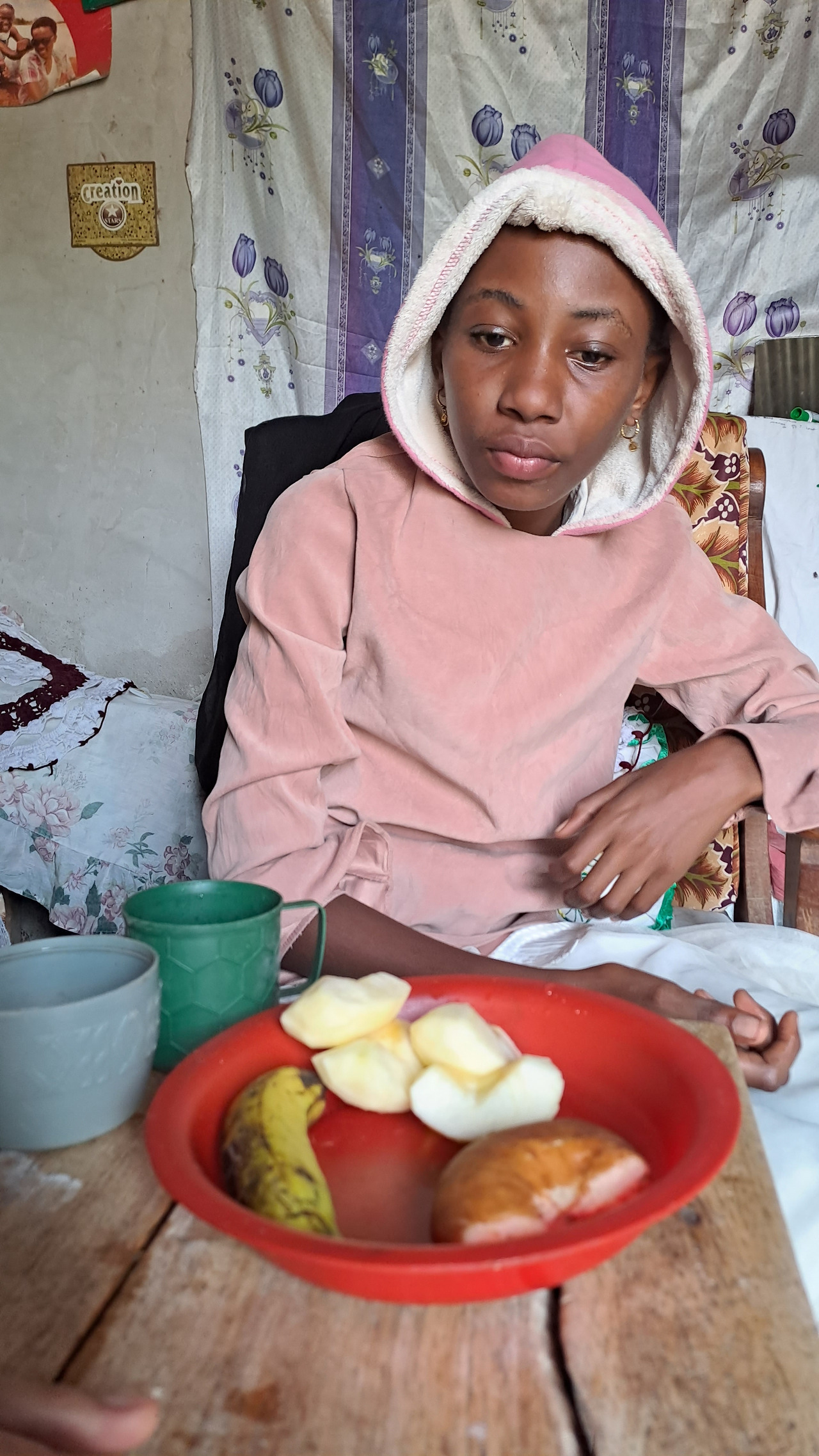 며칠째 말라리아를 앓고 있는 글로리가 내가 가져간 사과 두 알을 앞에 두고 한참을 바라보고 있다. 글로리 인생에 첫 사과인 것이다.
