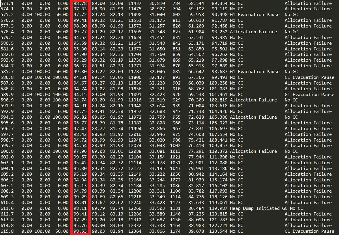 jstat을 보면 아시겠지만, Full GC가 있어나도 old 영역이 제대로 빠지지가 않습니다. 왜냐하면, parallelLockMap에 저장된 string key값이 어마어마 하거든요!!!