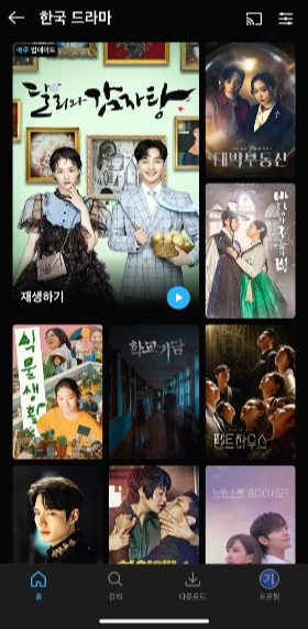 쿠팡은 특히 한국 드라마의 수급이 좋지 않습니다. 쿠팡플레이에 올라온 드라마 중 현재 방영 중인 건 "달리와 감자탕" 뿐입니다. 또한 최신 순으로 정렬했을 때 방영이 끝난 지 오래된 드라마가 대부분입니다. 대박 부동산의 경우 올해 6월 9일에 방영 종료했습니다.