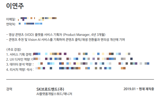 다른 사람들 말로는 나의 경력이 하나의 스토리로 정리되면 좋다고 한다. 나에게 가장 좋은 스토리라인이 무엇일지 고민이다. 나는 AI, 데이터와 관련된 일을 계속하고 싶다. 서비스에 관한 숫자를 보는 것이 재미있고 적성에도 맞다. 데이터를 잘하는 기획자로 포지셔닝을 하고 그런 일을 더 많이 할 수 있는 곳을 찾는 것이 목표이다.
