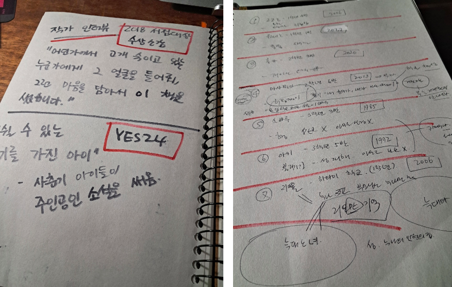 저는 좋아하는 건 무조건 손으로 만져야 하는 성격인지라... 공부를 할 때도 직접 손으로 쓰지 않고서는 외울 수가 없어서 손과 손목이 퉁퉁 붓기도 했었죠. (제가 괜히 만다라트 계획표'운'란에 양손잡이를 넣은게 아니에요 ㅠㅠ)