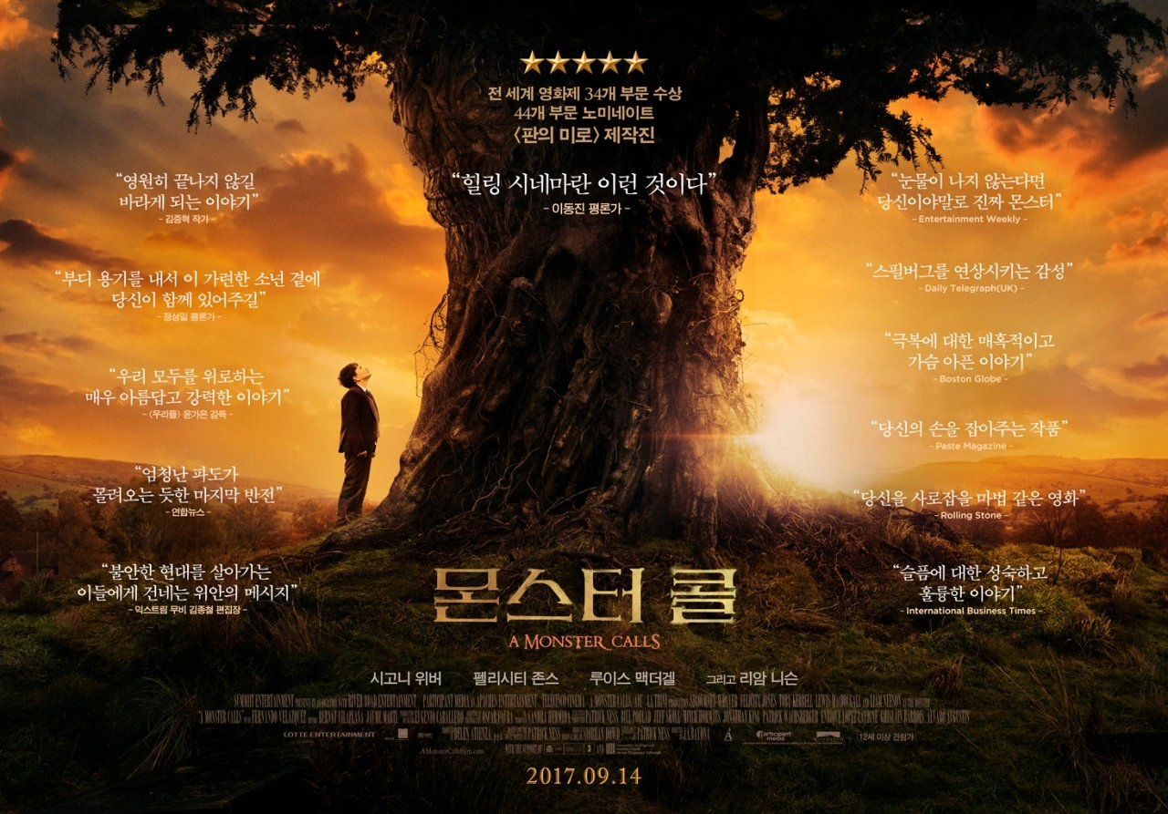 너무 힘들면 괴물이 우리를 부르지만 우리는 모두 다 잘 이겨낼 수 있어, 라고 말하는 영화. 강력 추천. 사랑하는 엄마의 죽음에 대해 이중적인 감정이 드는 소년의 회피와 두려움, 죄책감과 마주함을 훌륭하게 표현했다. 아역의 연기가 뛰어나다.