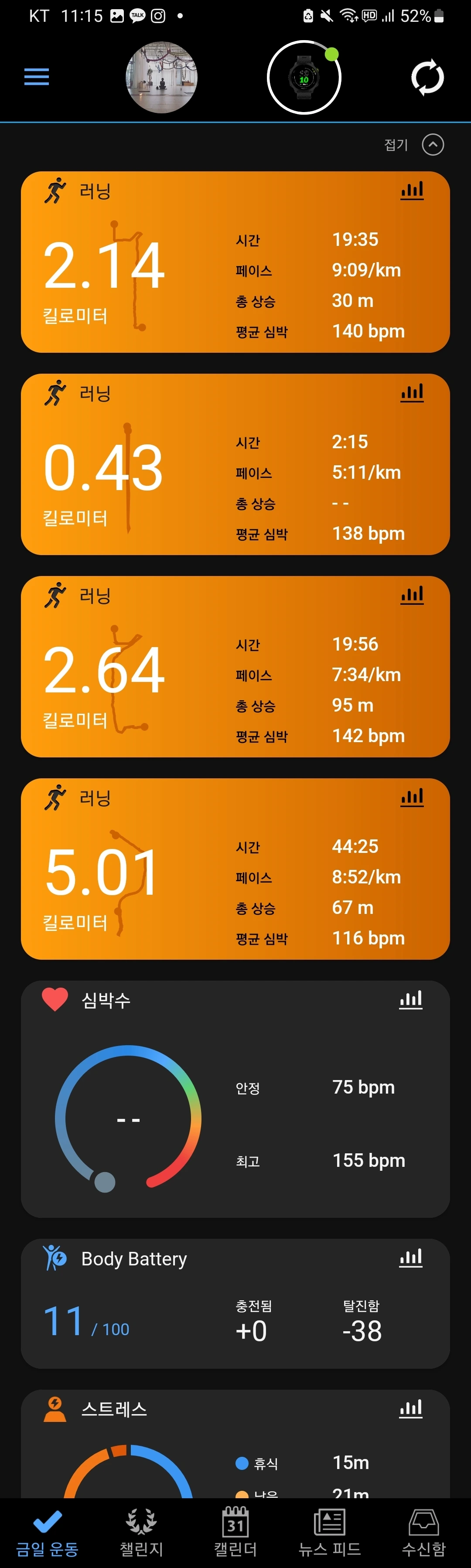 다행히 커피 생각도 안나고 오늘은 모닝런을 했을 때 처음으로 졸리지 않았다. 아래 기록은 오늘 오전 6시 5키로, 이후 저녁 8시반 저녁 러닝 기록.