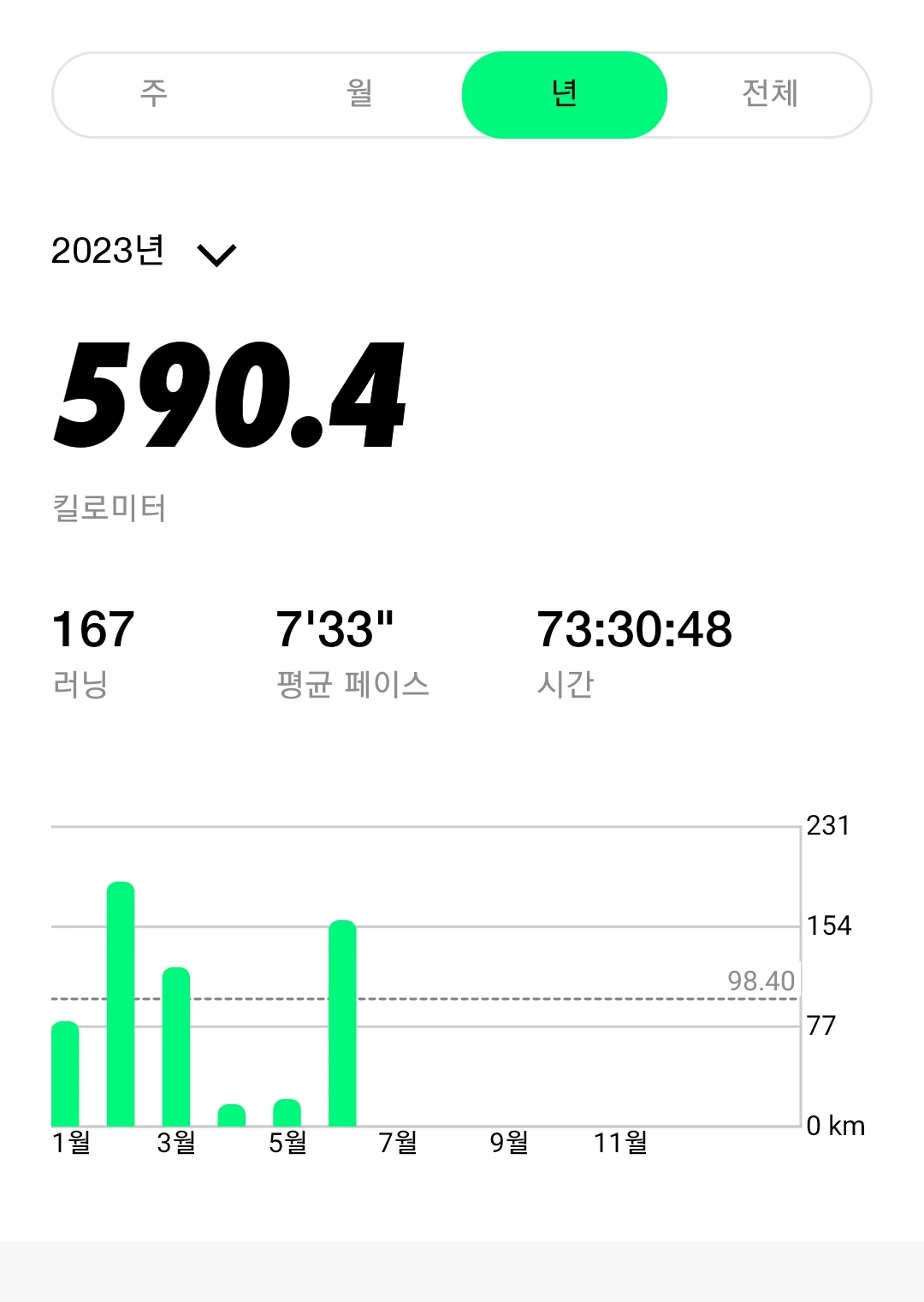 6월은 모닝런을 다시 시작하고 진지하게 올해 11월 가이드러너를 생각하며 러닝에 몰입해 150km 이상을 달성했다.