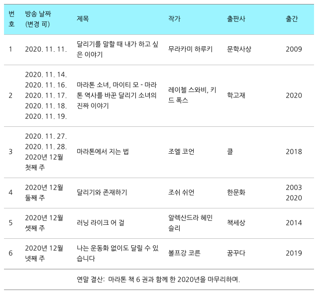 책방송 계획표:지난 3개월은 마라톤, 다음은 영화원작