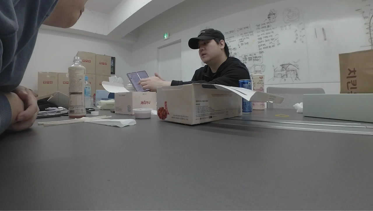 작가로서 대사 짜는 게 아예 몸에 체화된 수준이네. 이런 환경에서 10년을 작업해 온 부산물이라고 봐야겠어요. 근데 이 변하지 않는 환경, 그러니까 같은 사람들과 같은 공간에 꽤나 오랫동안 귀속이 된 상태잖아요? 창작을 하는 창작자에게 어려운 상태라고 봐요. 꾸준히 다른 소재나 경험을 얻어야 새로운 무언가가 나올 텐데, 답습되는 환경을 스스로 어떻게 파헤쳐 나가요?
