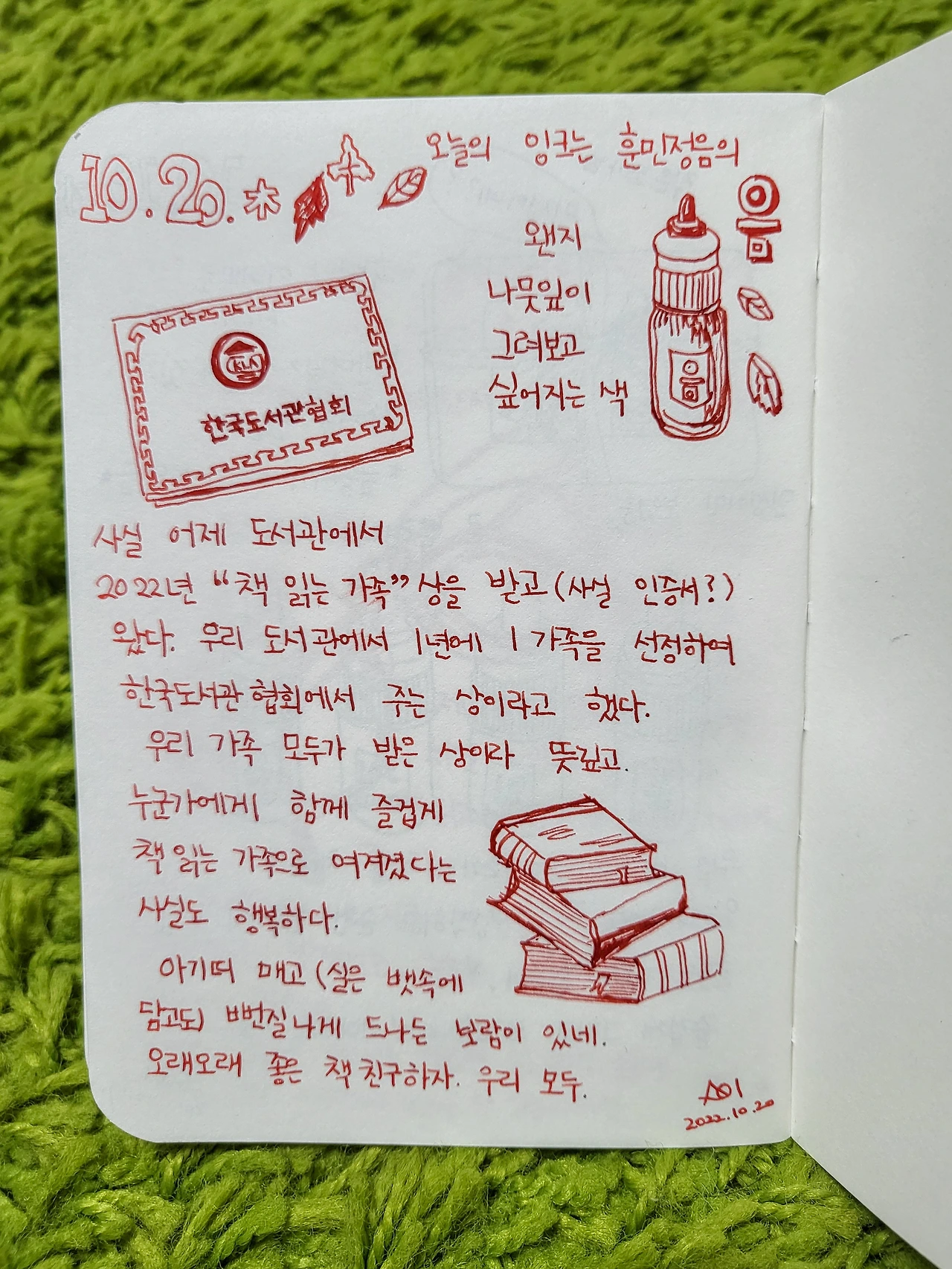 관장님께서 우리 도서관 내에서 1년에 딱 한 가족을 선정하여 한국도서관협회에서 주는 인증서라며 말씀하셨다.