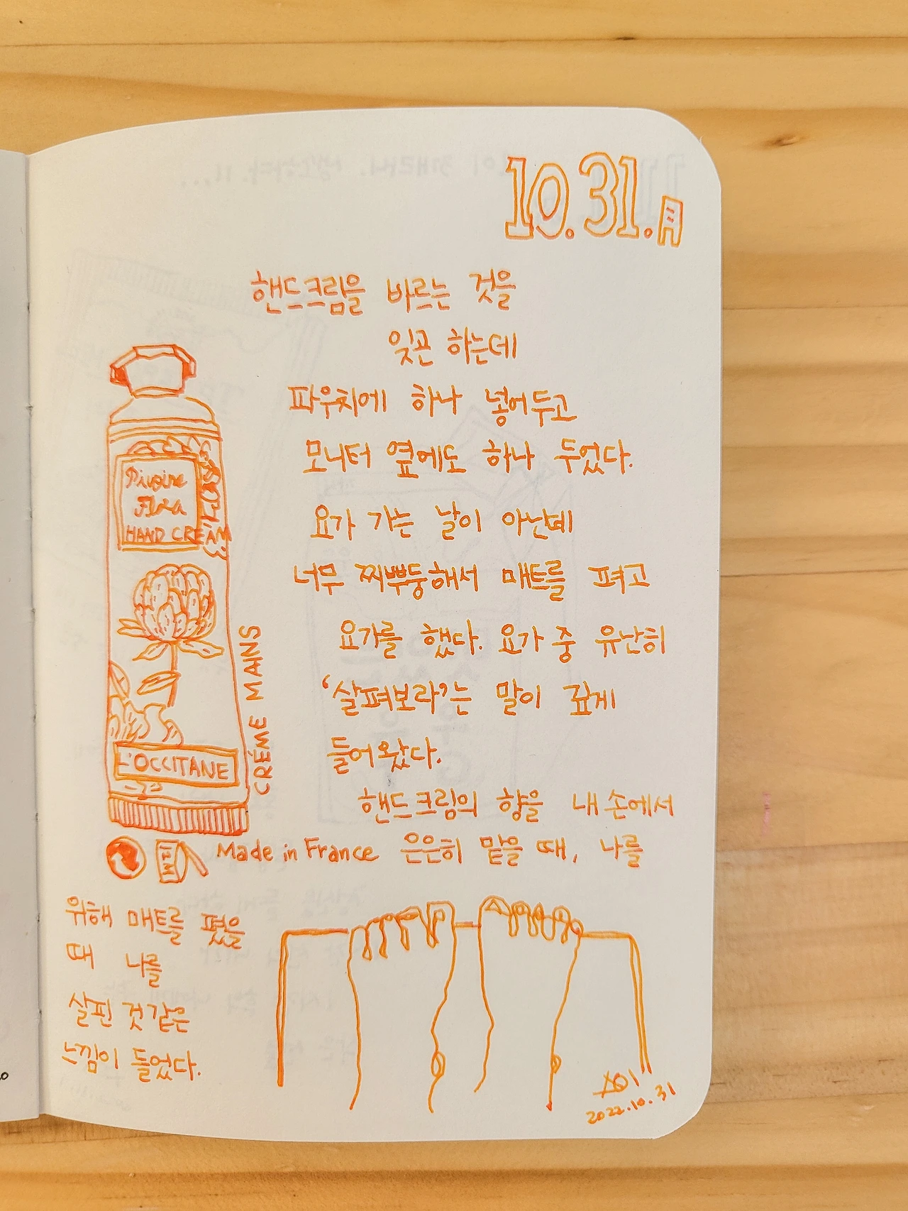 화장실 다녀와 순간의 짬을 내어 바른 핸드크림의 향내가 은은히 나는 순간순간