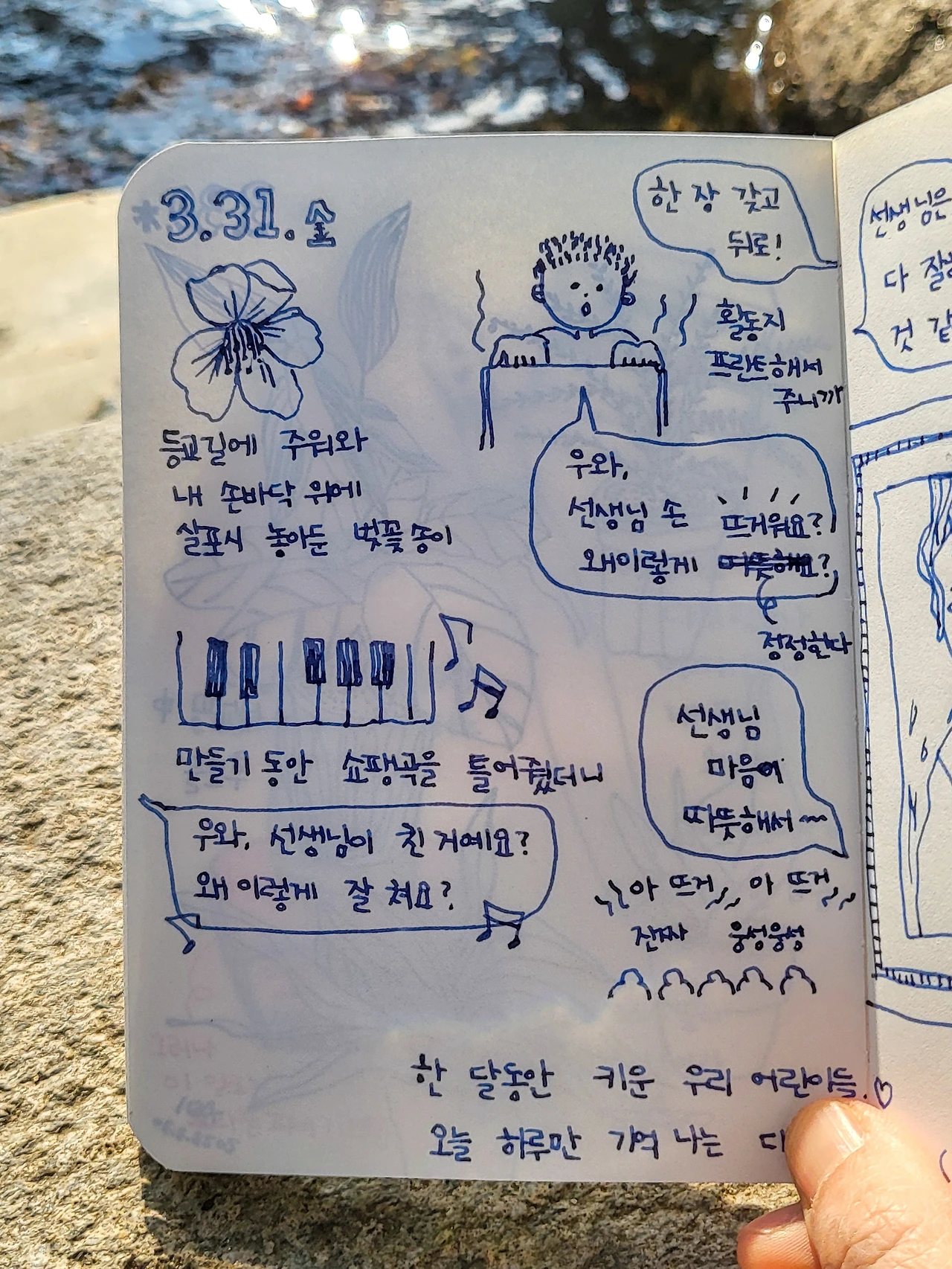 그럼에도 불구하고 어제는 일기에 어린이들의 이야기를 끄적였다.