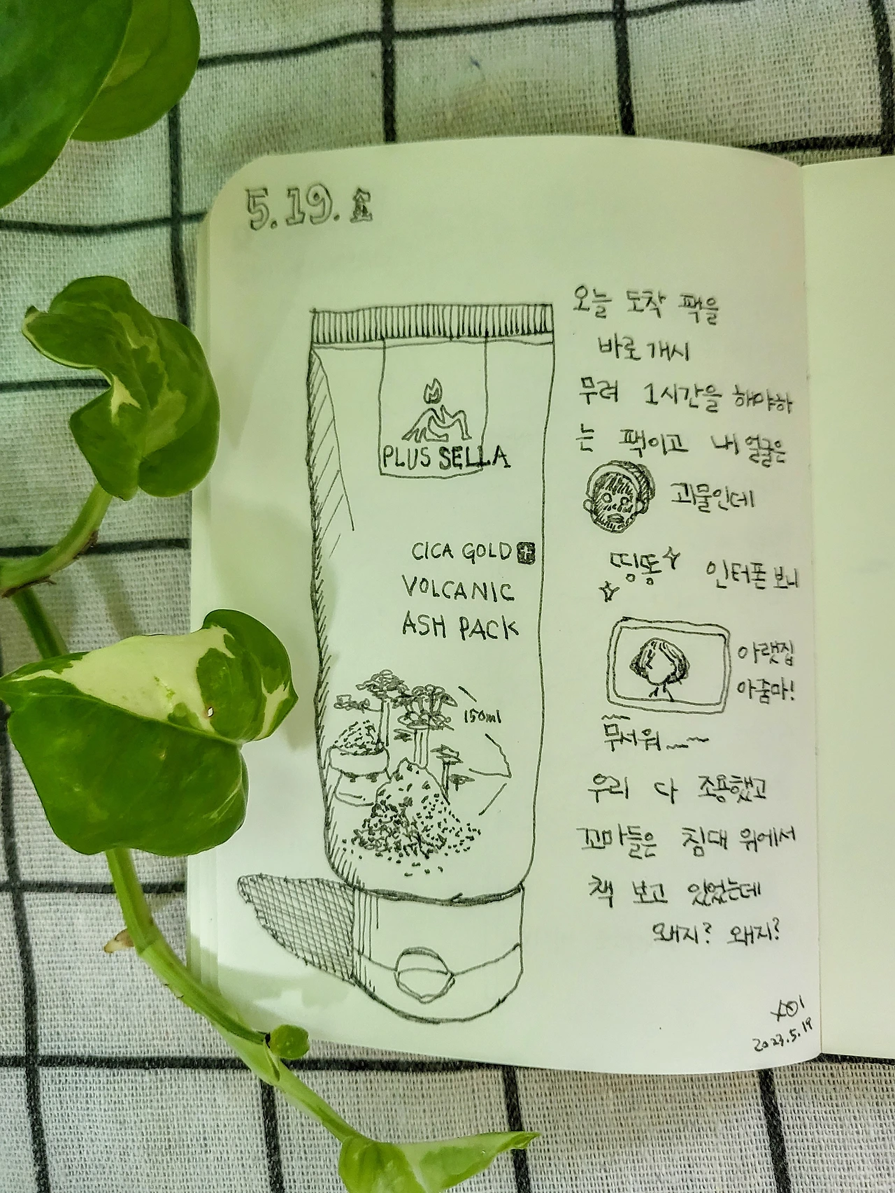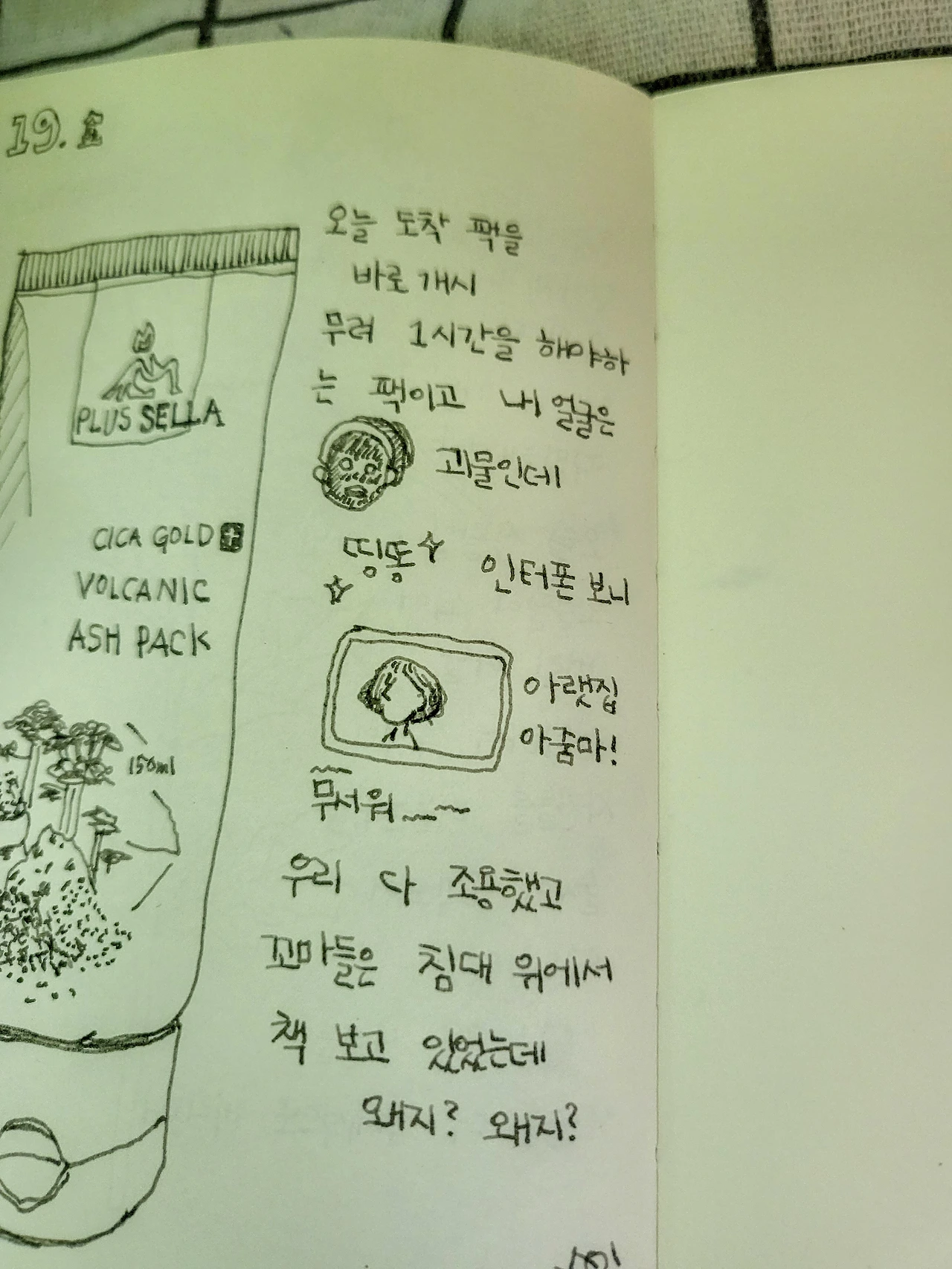 씻어내어야 하는 팩을 하고 있던 중이라 상황이 진짜 코미디였다.