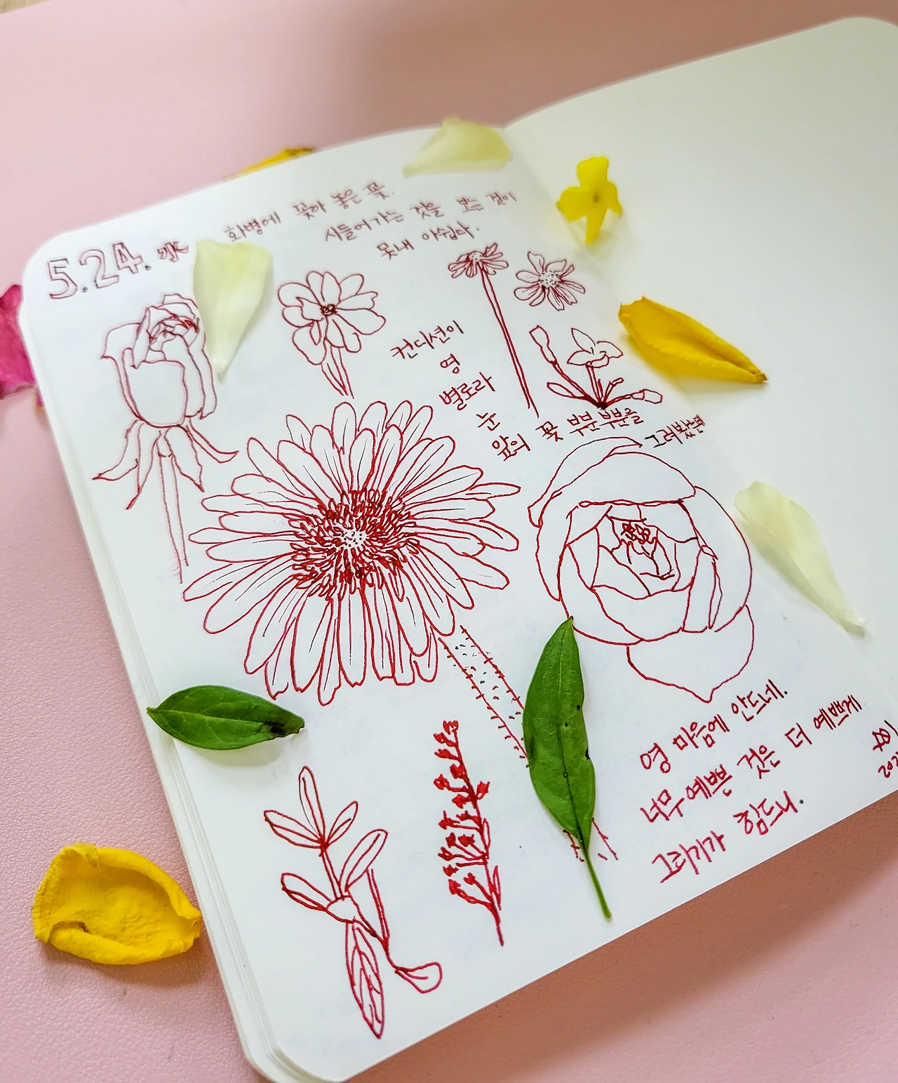 아쉬운 마음에 그러모은 꽃잎들은