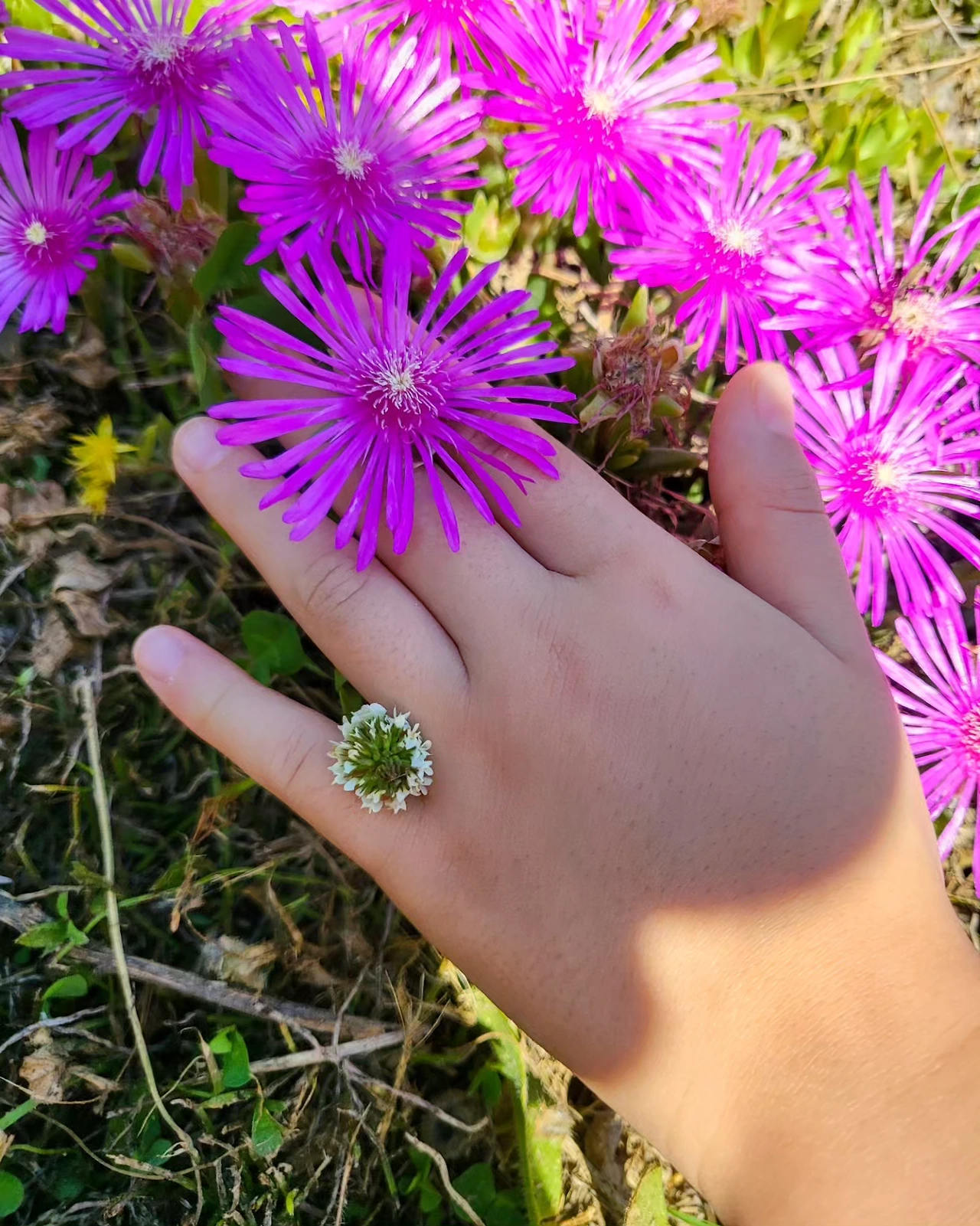 예쁜 꽃에 발길이 머물러 쪼그려 앉으면