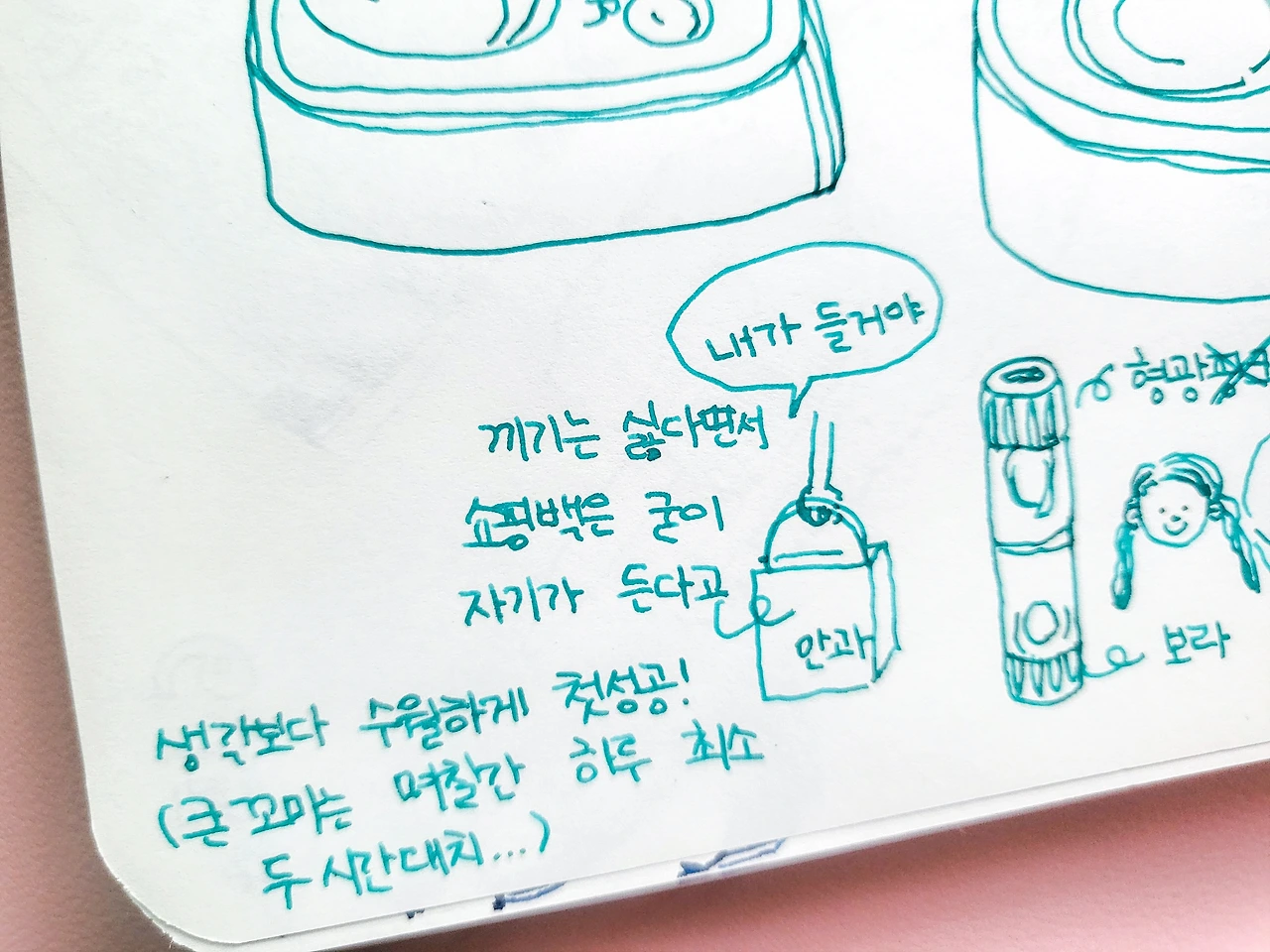 일기장 펼쳐두었는데 자기 이야기인걸 보고 입가에 미소가 번지는 작은 꼬마