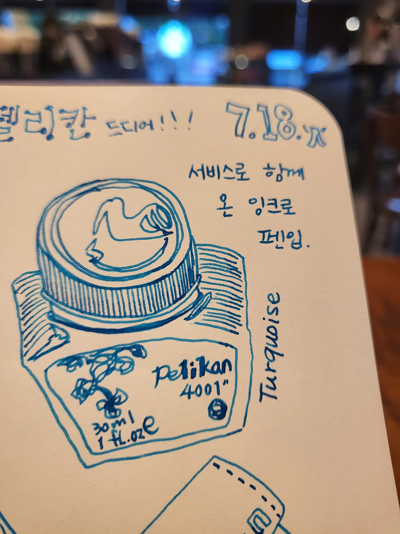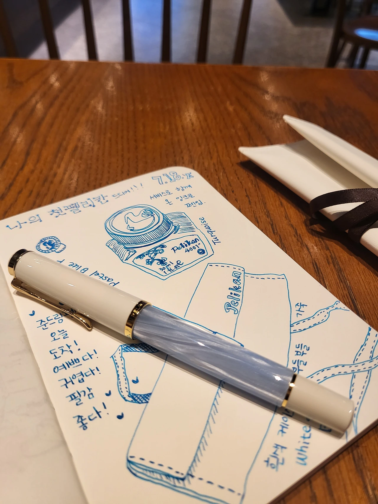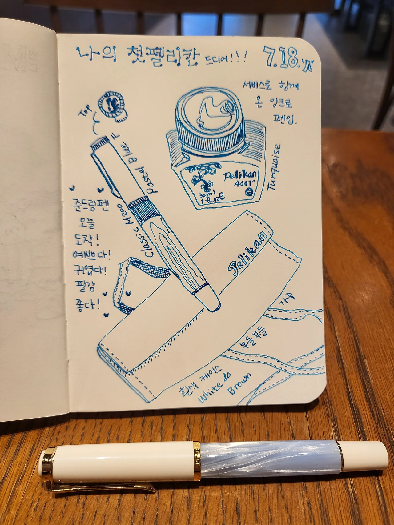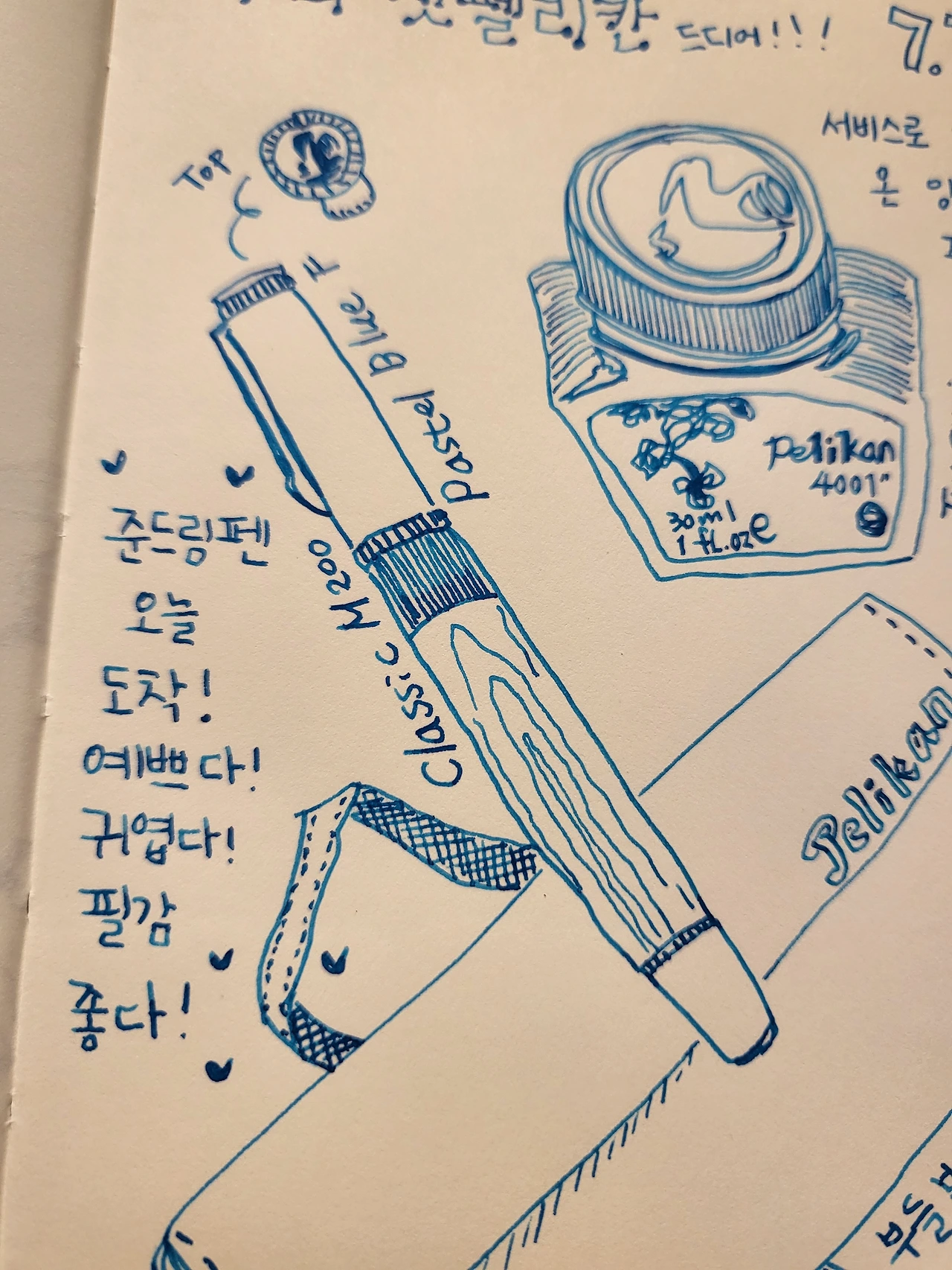 그리고 최근 내 드림펜과 흡사한, 파스텔 그린에서 파스텔 블루가 된 이 녀석이 국내샵에 들어온 것이다. 만년필은 오늘이 가장 쌀수도(몇 년 전 펠리컨만년필 가격을 알면 눈물이..), 또 이 만년필이 언제까지 있을 것 같아?라는 자아 설득 과정을 통해 예약까지 하여 들이게 되었다.