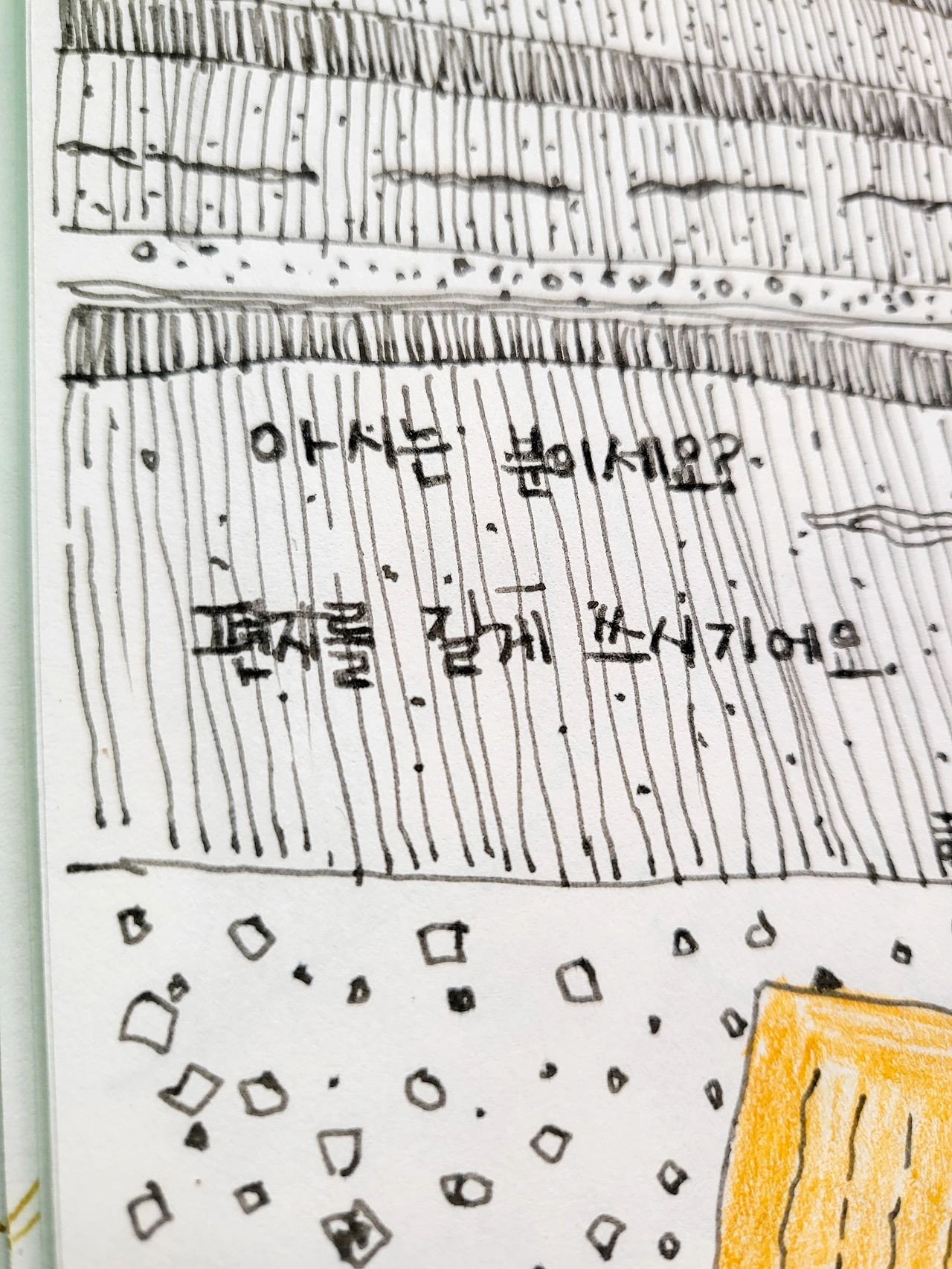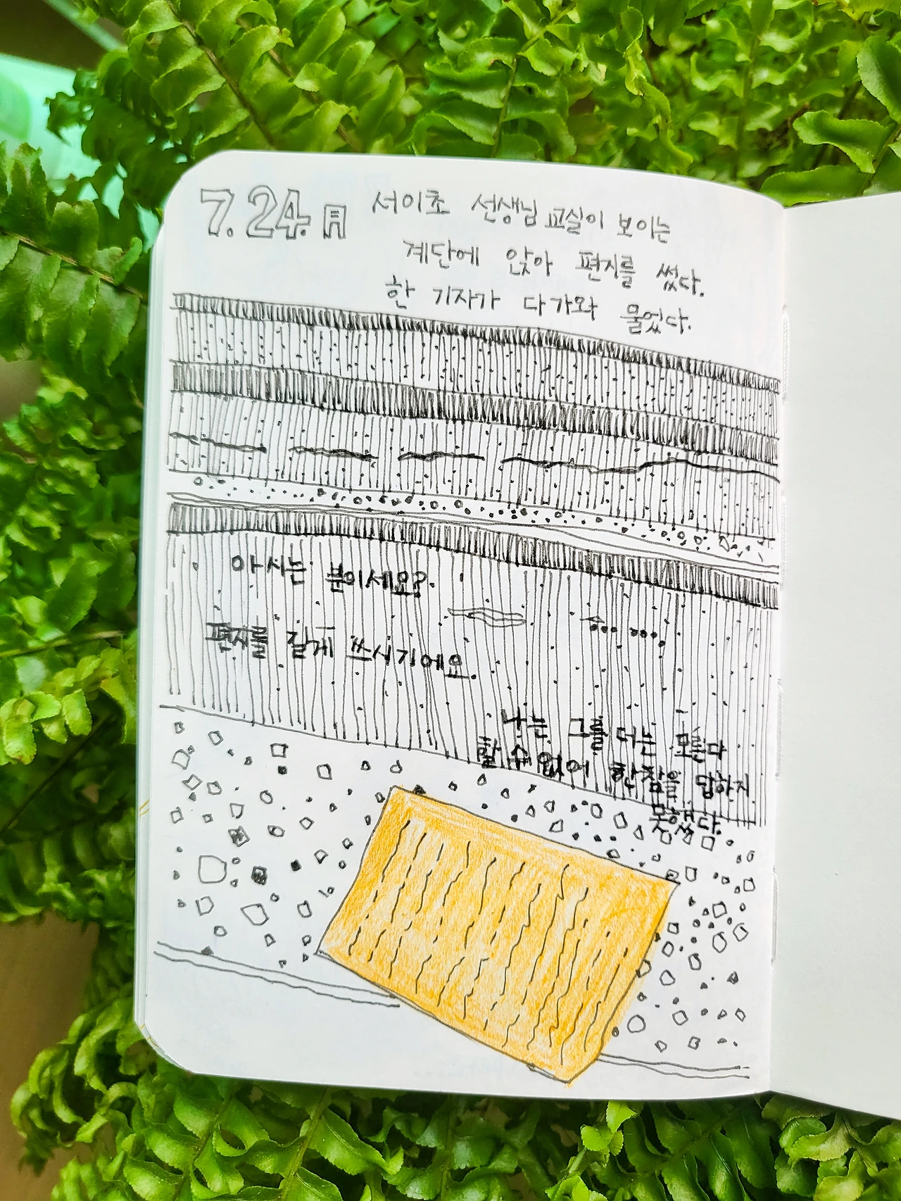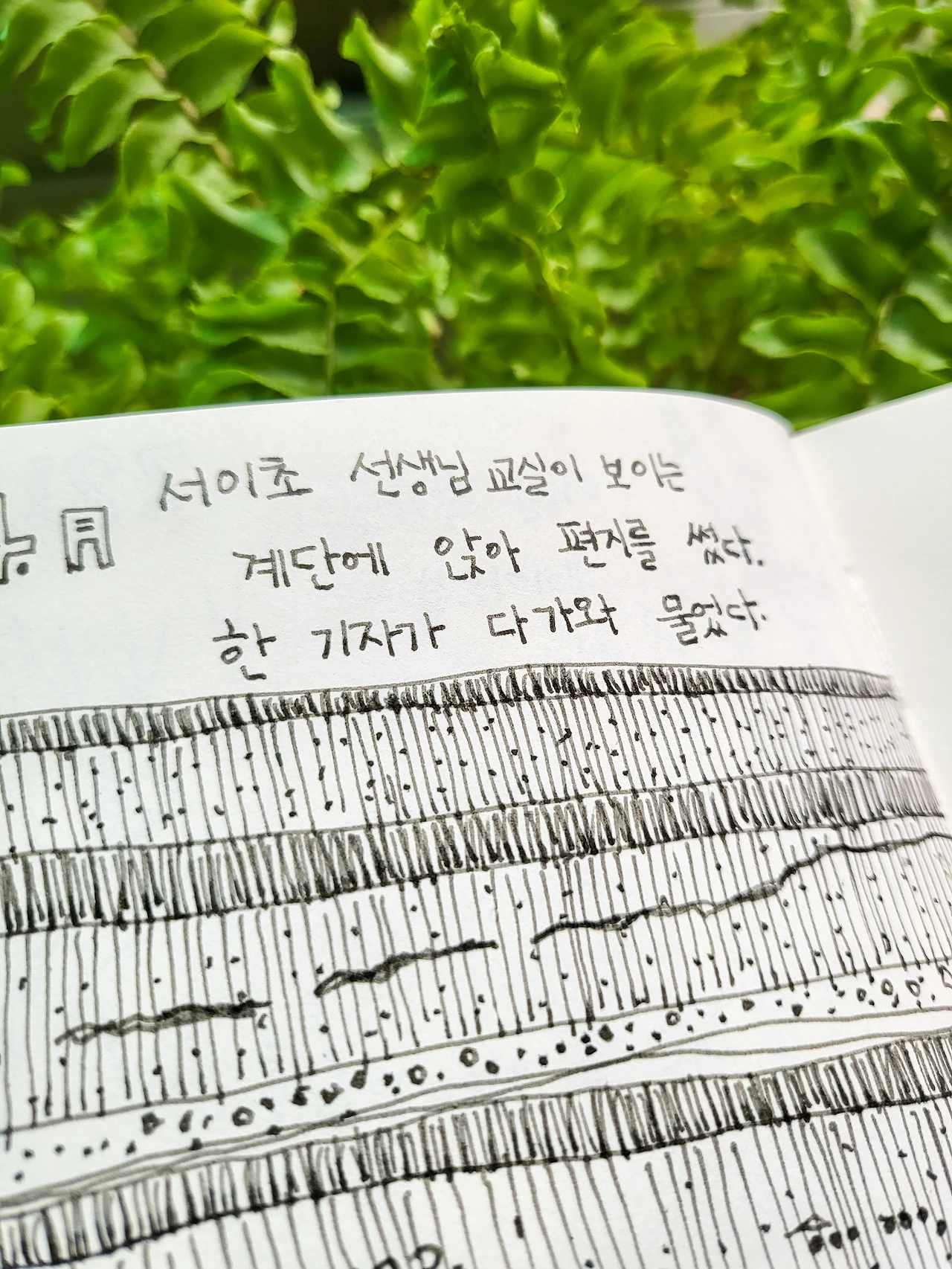 선생님 교실이 보이는 계단에 앉아 교실 벽을 바라보며 편지를 쓰다 말다를 반복했다.