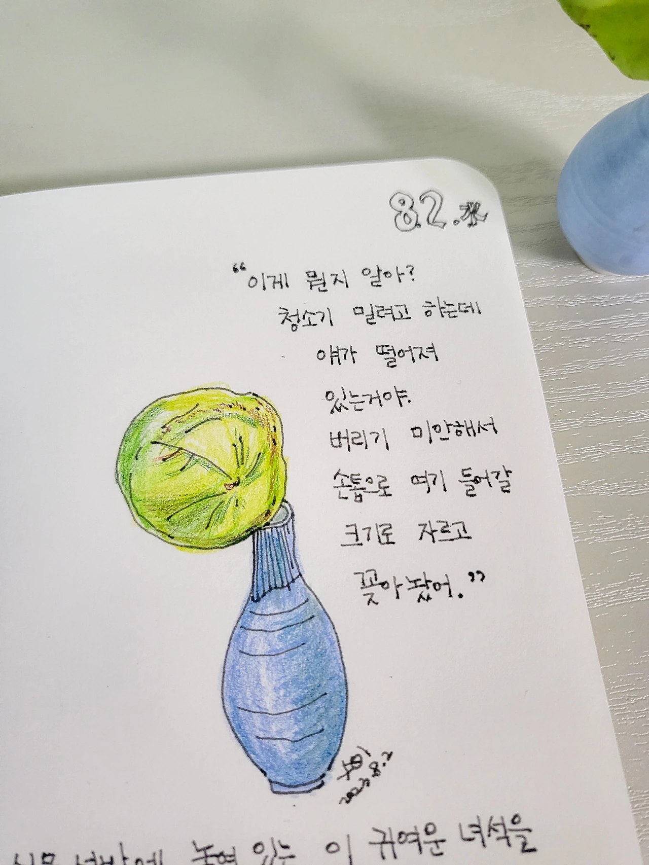 내가 그리고 있으니 큰꼬마는 작은 무용담을 말하듯 뿌듯해하며 그리고 있는 내 곁으로 와 재잘거린다.