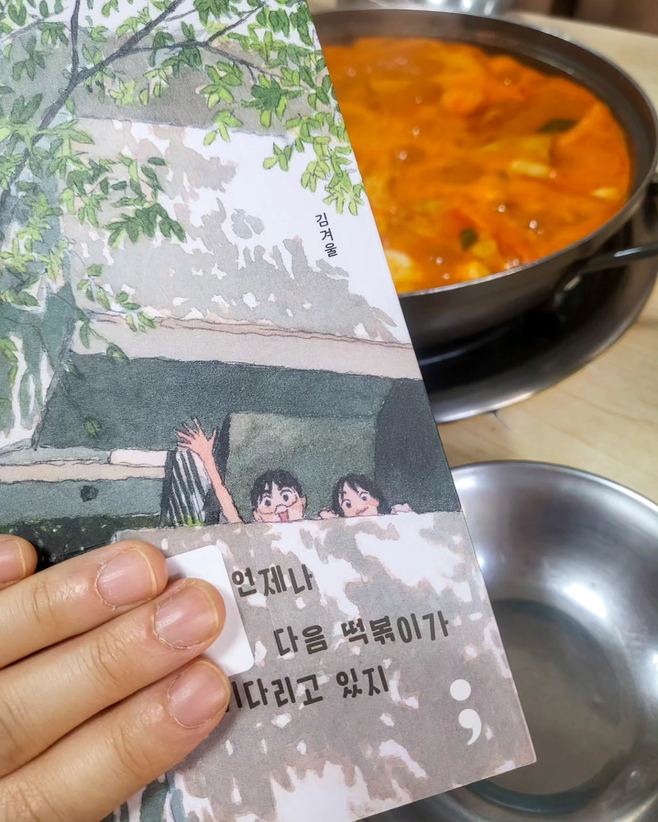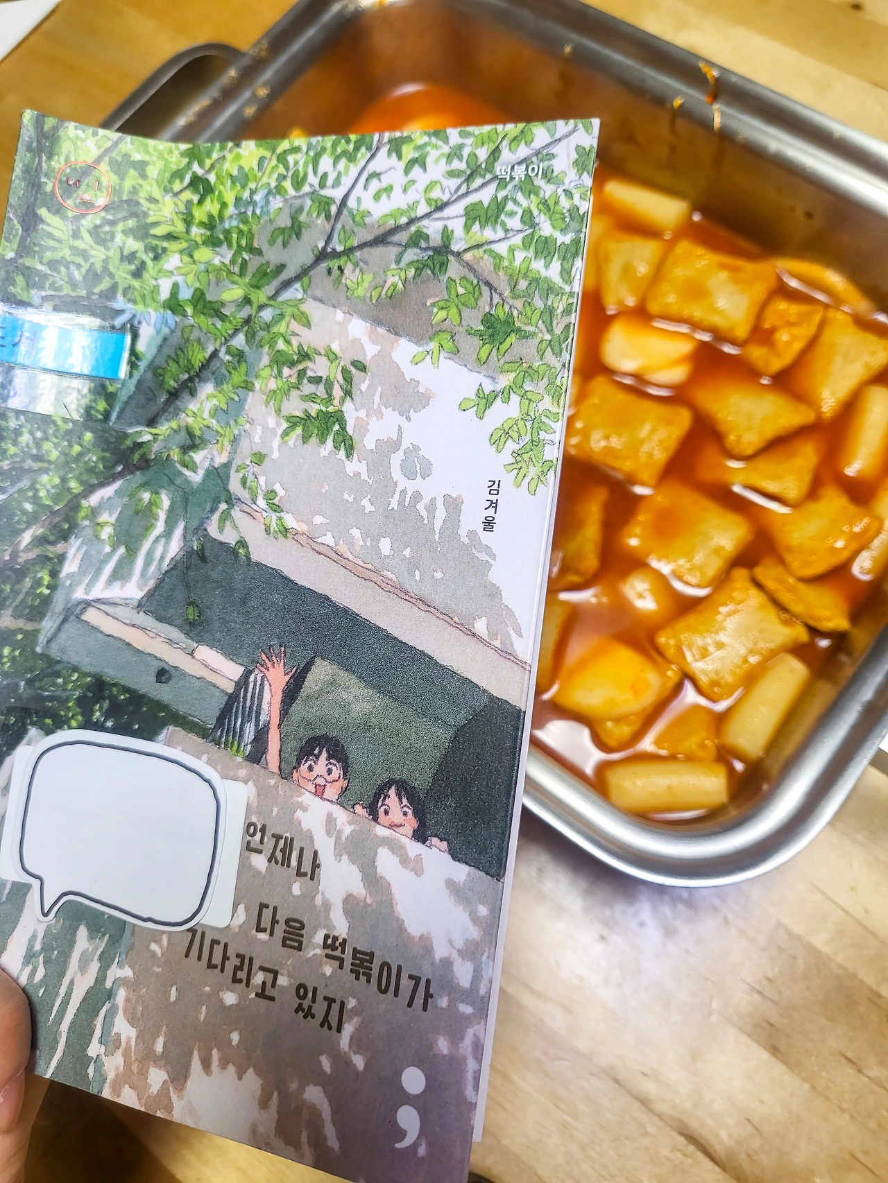<떡볶이_언제나 다음 떡볶이가 기다리고 있지._김겨울> 이 책을 한밤 중에 읽는데 너무 침이 고여서 중간 부분을 낭독했다. 이어지는 두 꼬마의 비명. "으악~~ 먹고 싶어!" "우리 내일 떡볶이 먹으러 갈까?" 그렇게 우리는 그 밤을 무사히 보내고 다음날 우리가 제일 좋아하는, 내가 중학교 때부터 다닌 떡볶이 집에 다녀왔다.