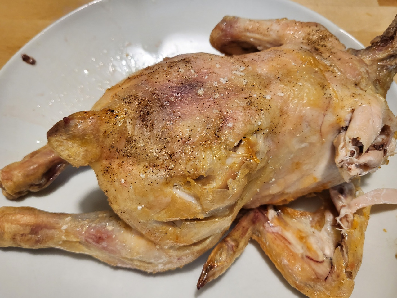 영양적으로 부실하지 않은 식사를 제공 가능하면서도, 적당한 가격, 그리고 무엇보다 이 더운 여름날 내가 고되지 않고 쉽게 조리할 수 있는 식재료로 합격이야. 닭을 정성스럽게 씻겨 소금과 후추를 골고루 뿌린 뒤, 에어프라이기에 넣고 버튼만 누르면 되거든. 아, 간간히 들여다보고 뒤집어주는 세심함도 필요하긴 하지.
