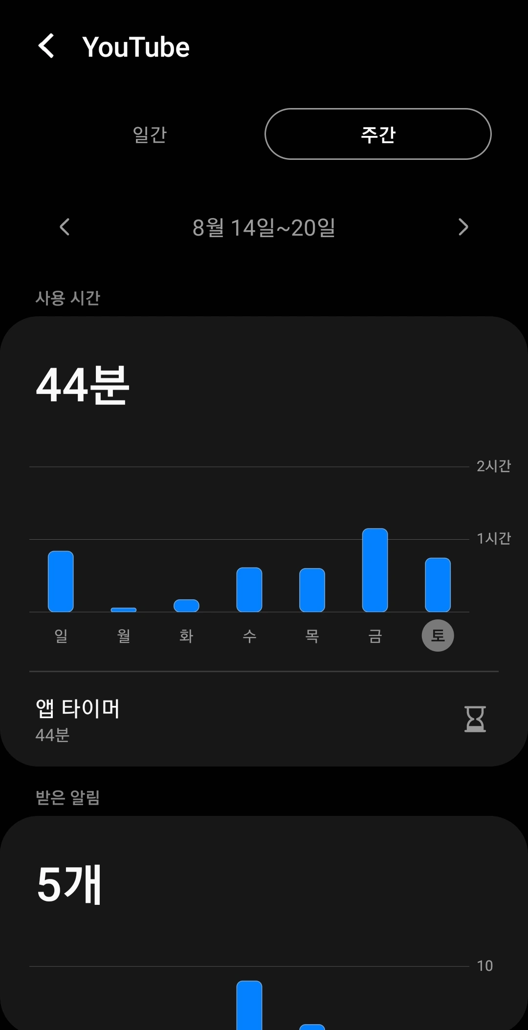 우선 유튜브 디톡스를 시작하기 전, 직전 1주일의 기록을 확인해봤다.
