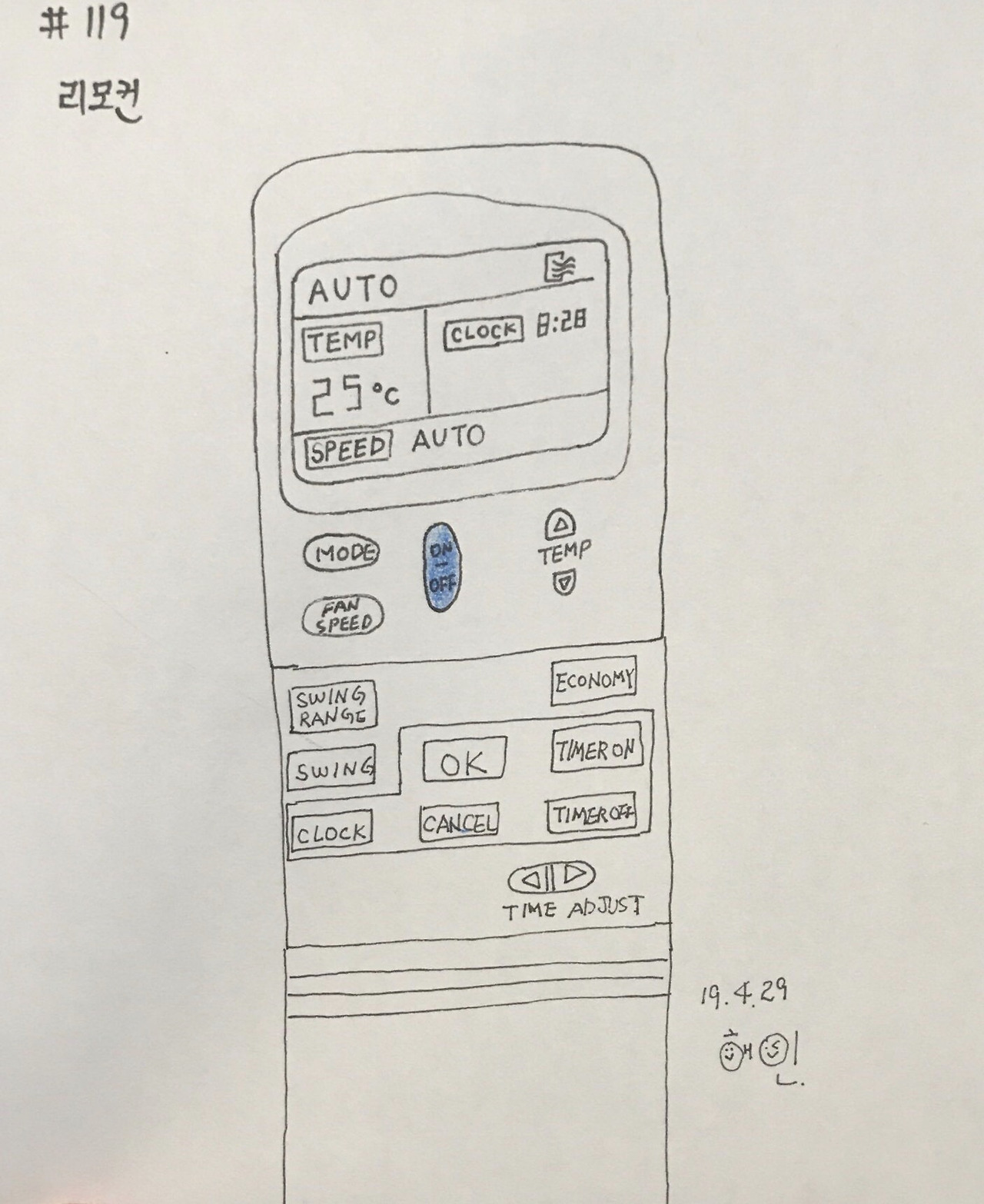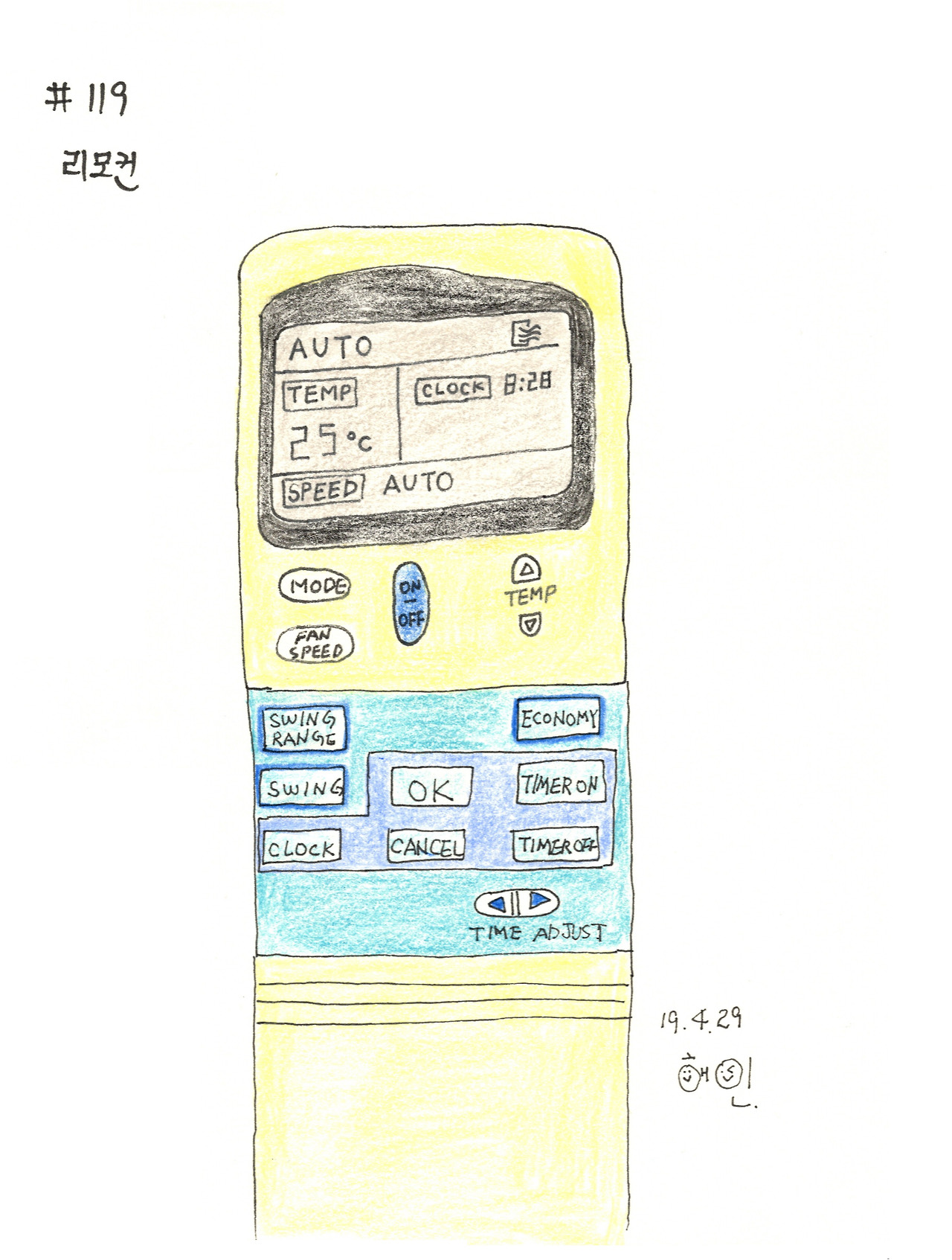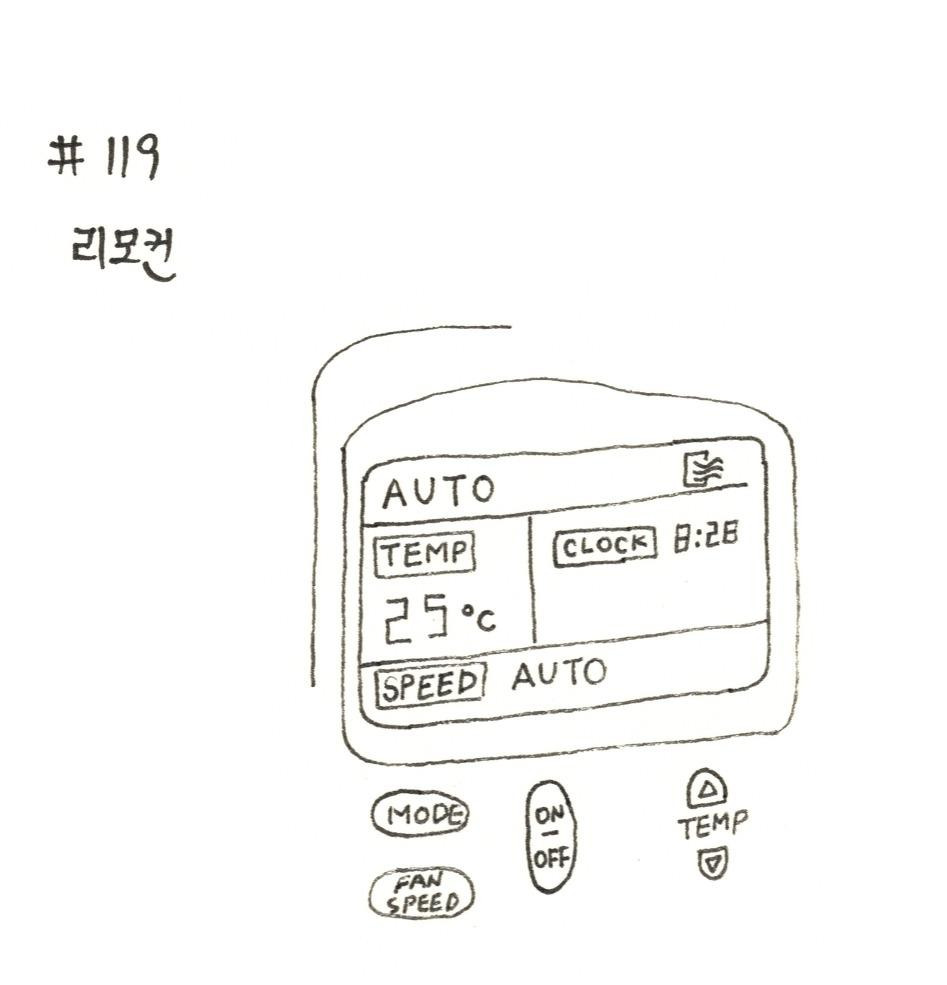 이번에는 오래간만에 긴 겨울잠에서 깨어난 에어컨 리모컨을 그렸다.