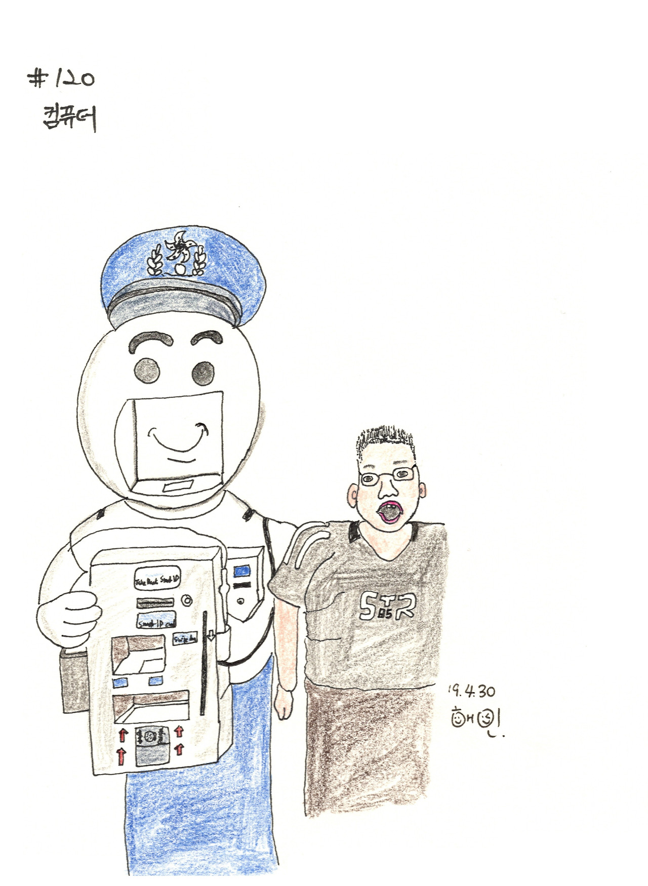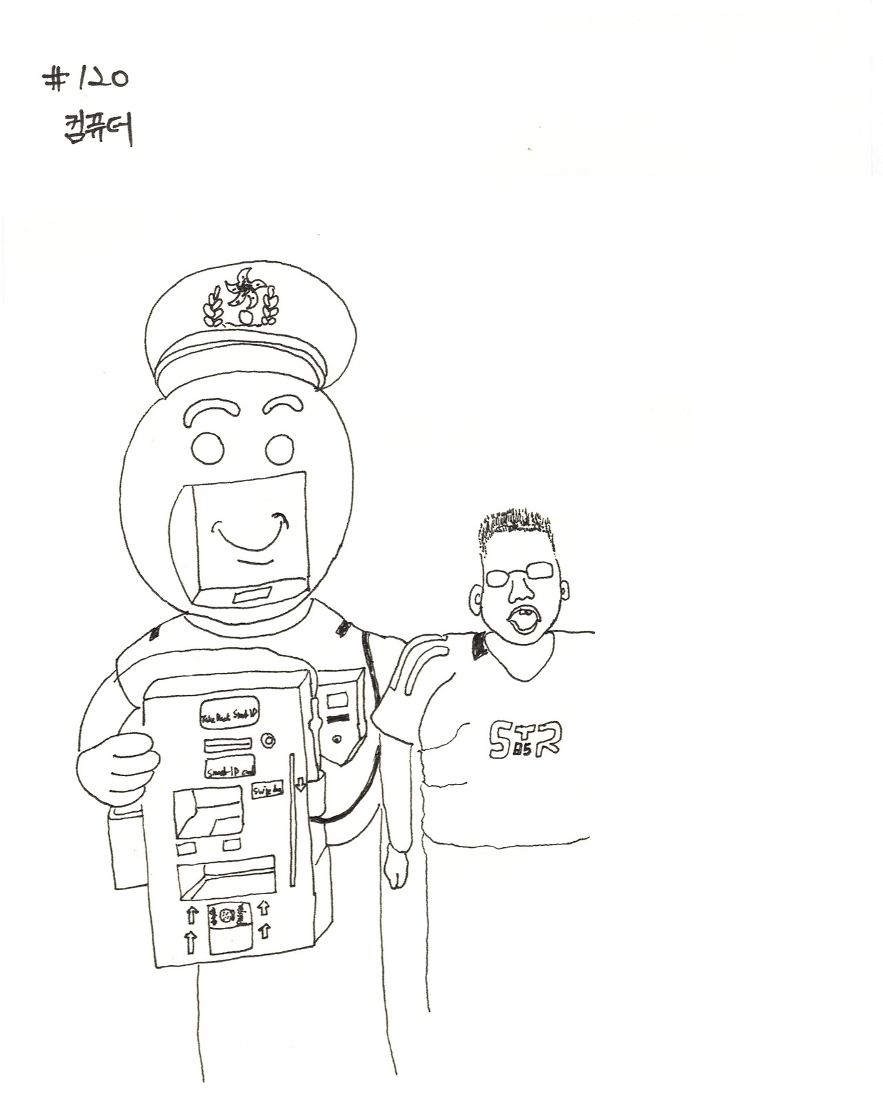 경찰 아저씨 모양처럼 생긴 여권 처리 기계 옆이었다.