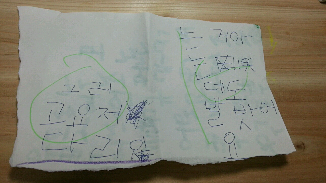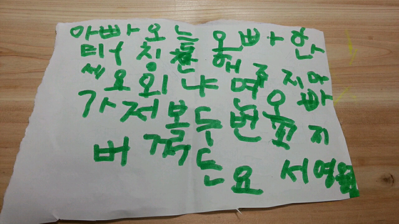 아직 유치원생이라 맞춤법이 맞진 않지만