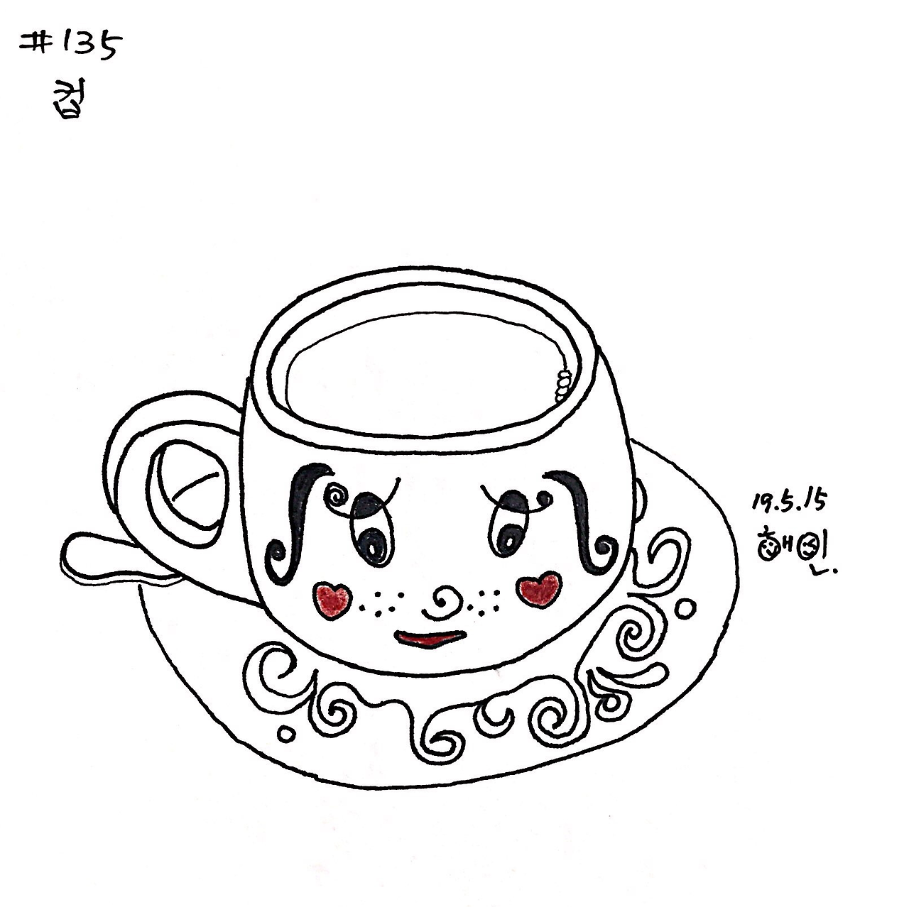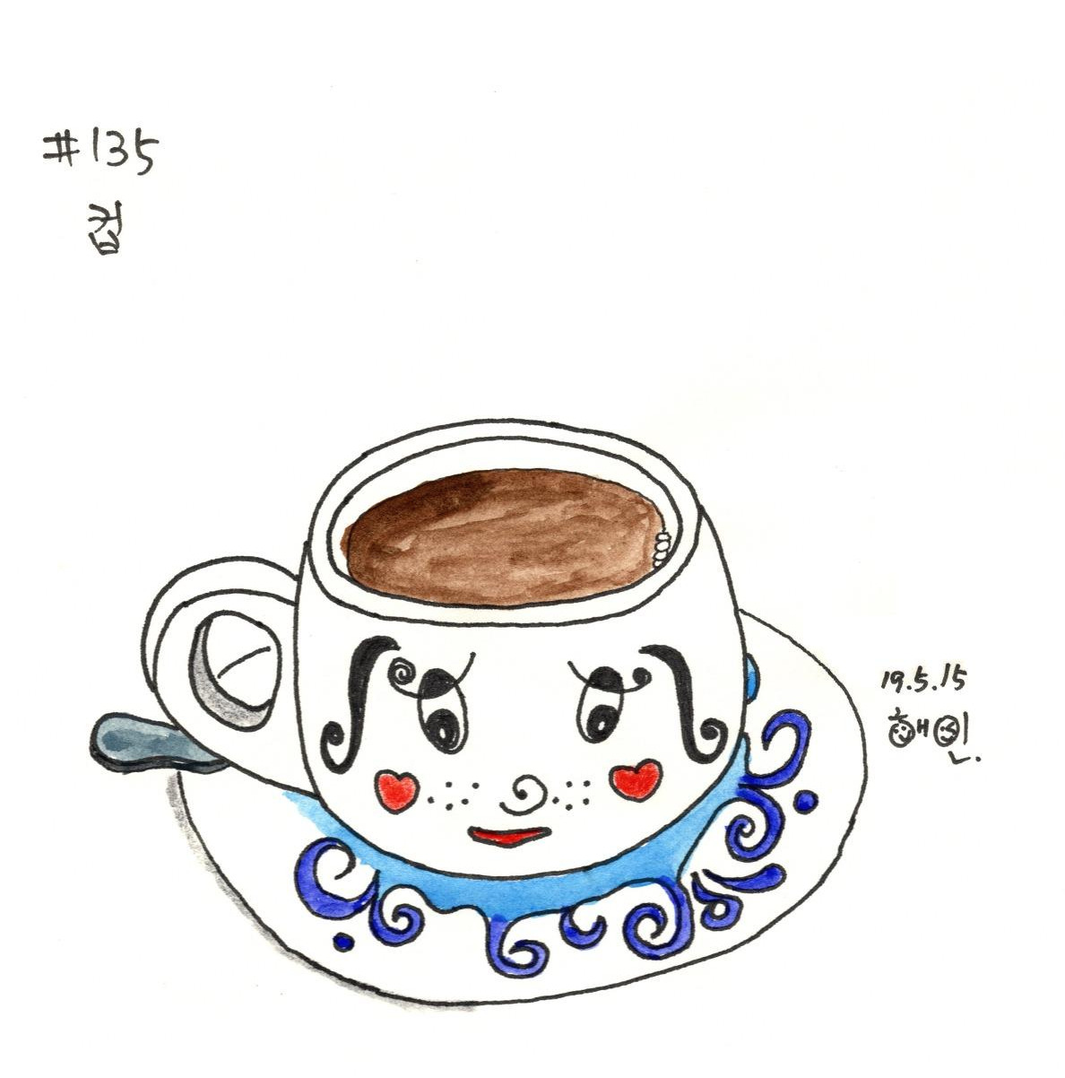 컵에 그려진 모습이 특이해서 그려 보았다.