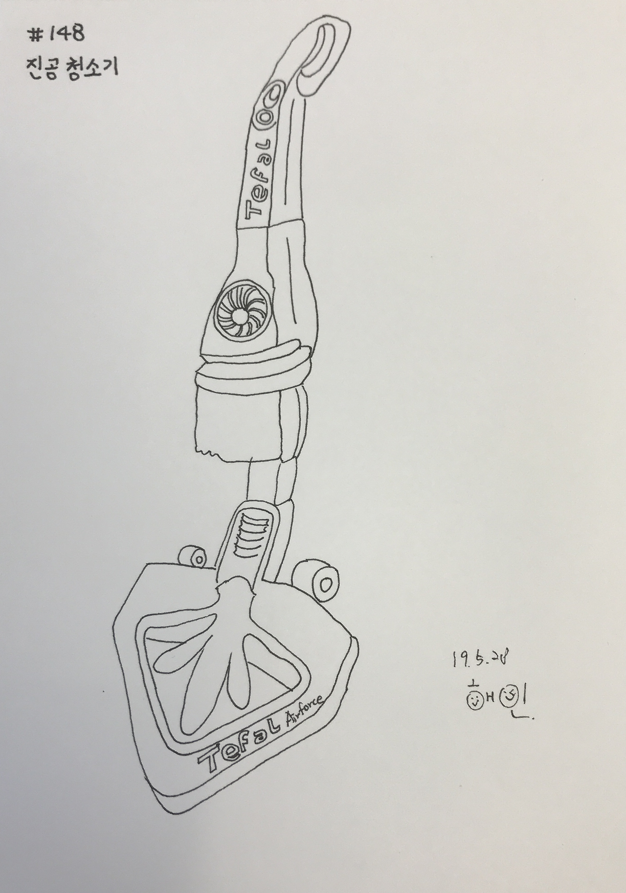 100d 100d project | 우리 집 진공청소기는 늘 서 있다 누워있지 않고 방 한편에 벽에 의지하지도 않는다 충전할 때만 선이 필요한 진공청소기 검붉은색의 몸체 회색의 먼지통 그리고 바닥의 검정 흡입구까지 색깔은 내 맘과 같지 않다 오늘도 그림을 이어 갔음에 만족하자