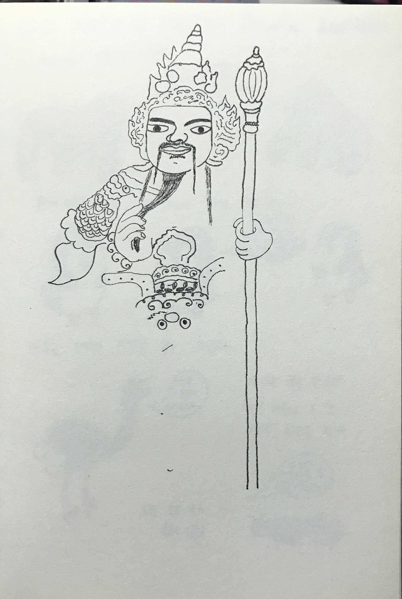 틴 하우 사원 문을 지키는 두 사람 중에 한 사람이다.