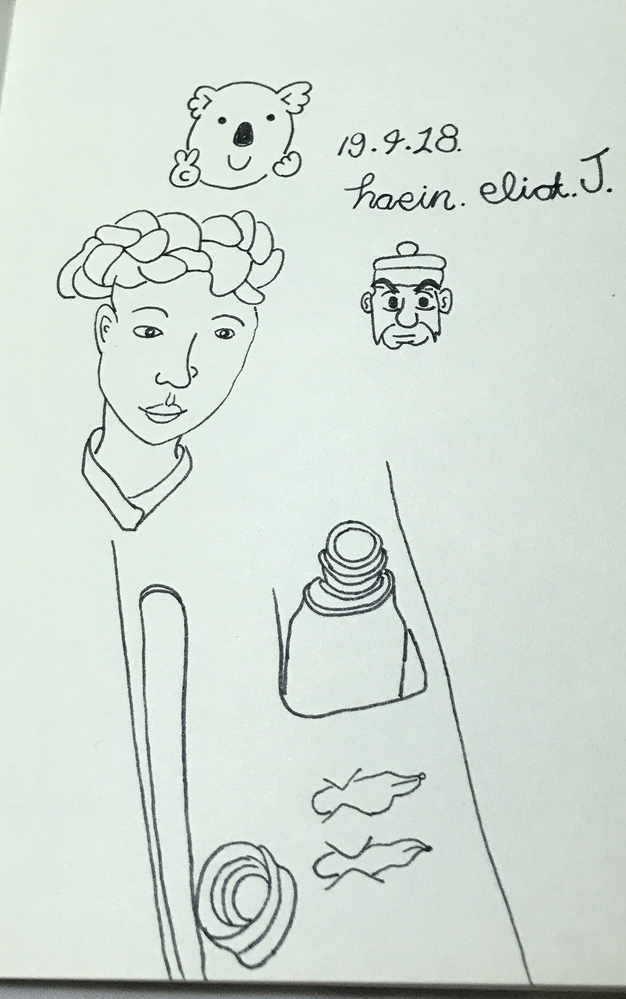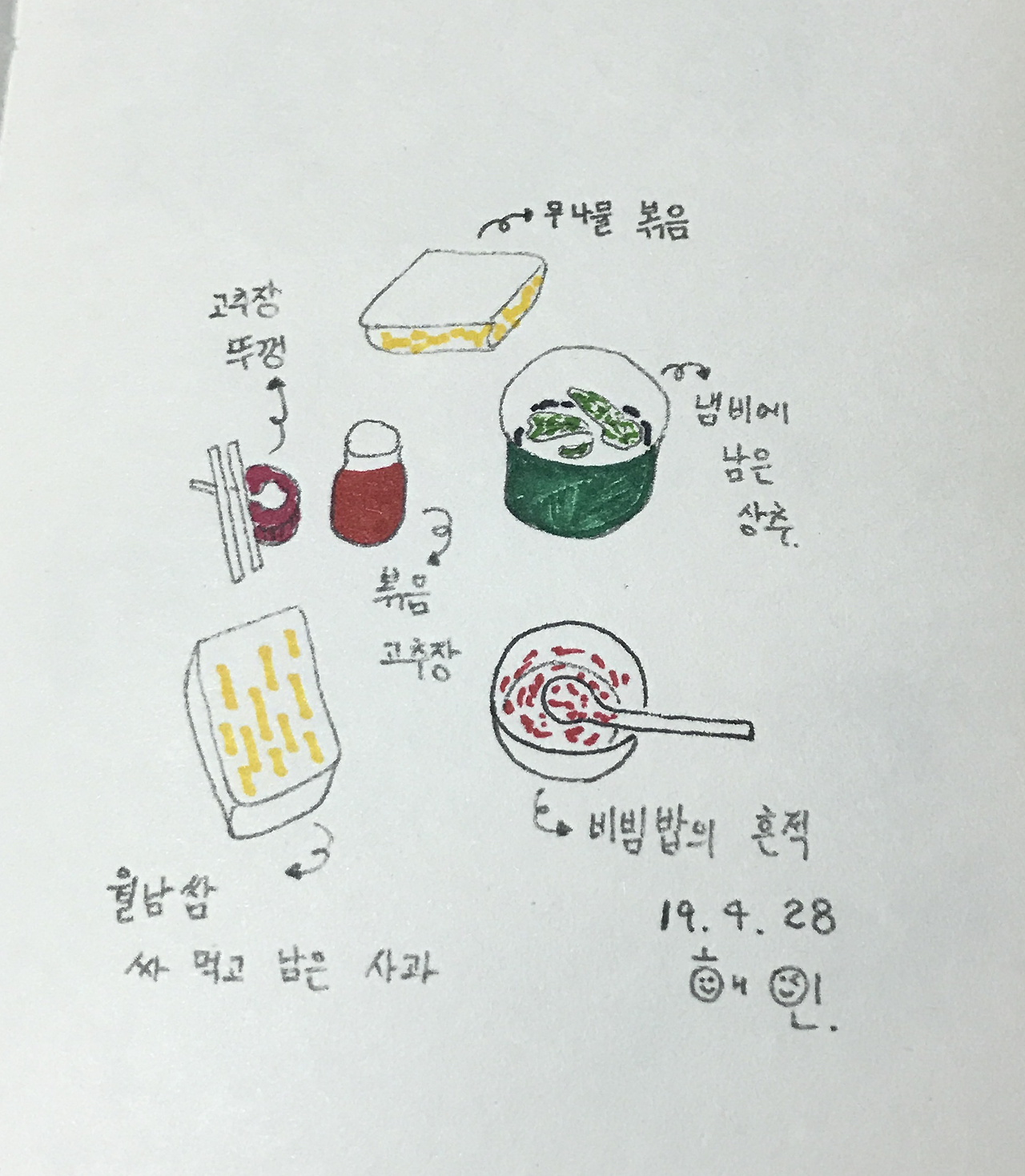 밥 먹고 나서 상 위에 있는 것들을 그렸다.