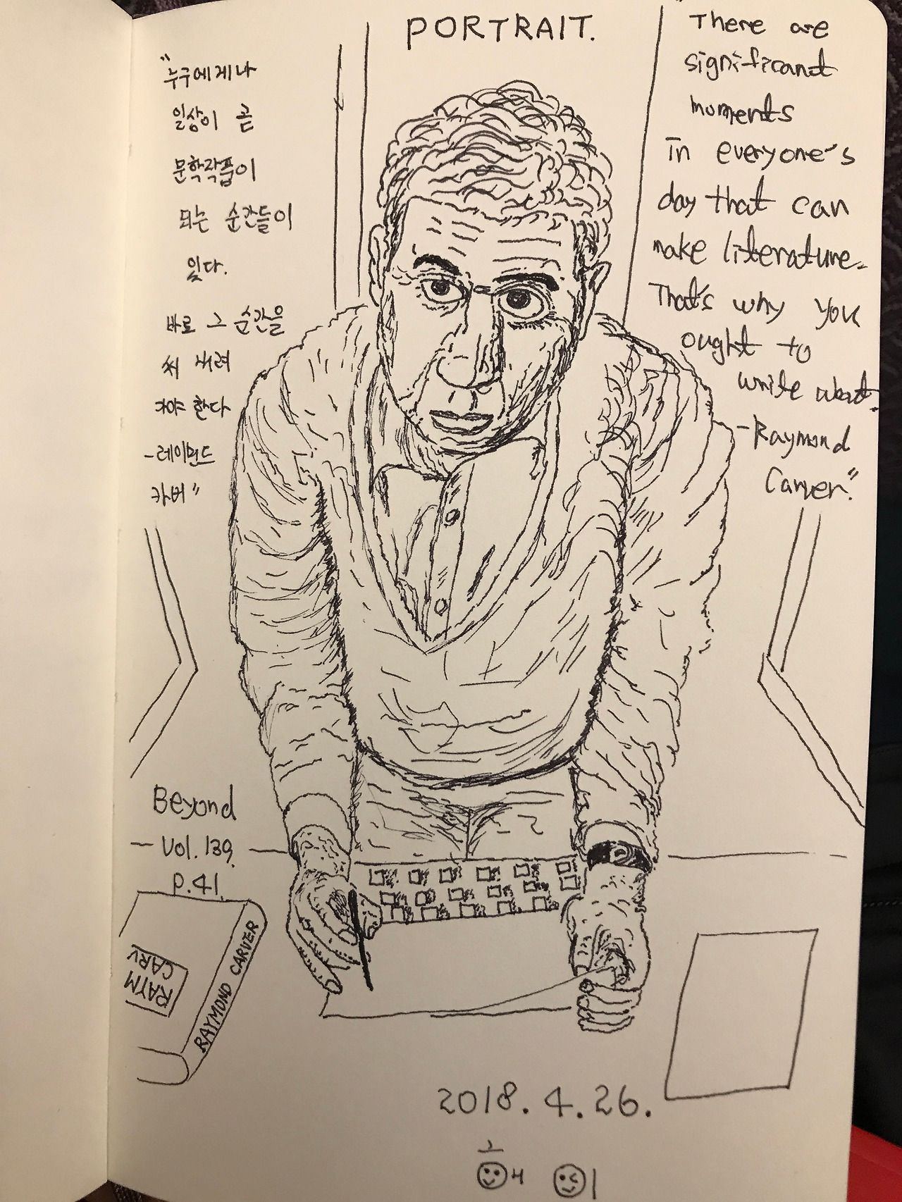사람을 잘 그리지는 못하는 편이다. 사람의 얼굴을 그리다 보면 선 하나만 달라져도 다른 사람처럼 보이기 때문이다. 특히나 주름 하나가 그림에 미치는 영향은 아주 크다.