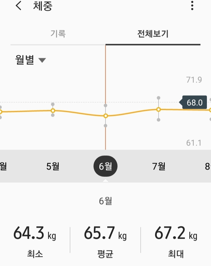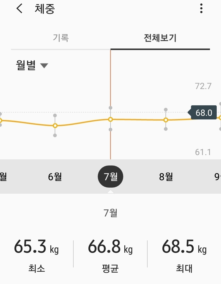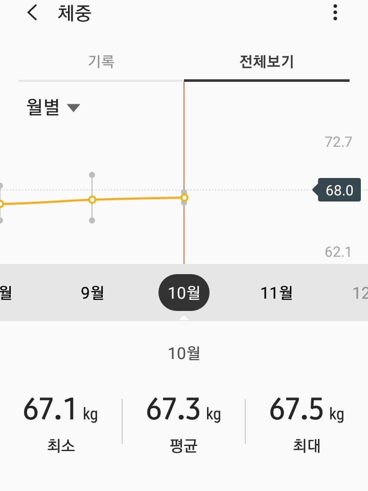 1월부터 마음을 다 잡고 걷고 달렸다. 그렇게 6개월을 움직이니 살이 빠졌다. 하지만 7월 이후 1만보를 기점으로 조금씩 조금씩 줄어들었다.