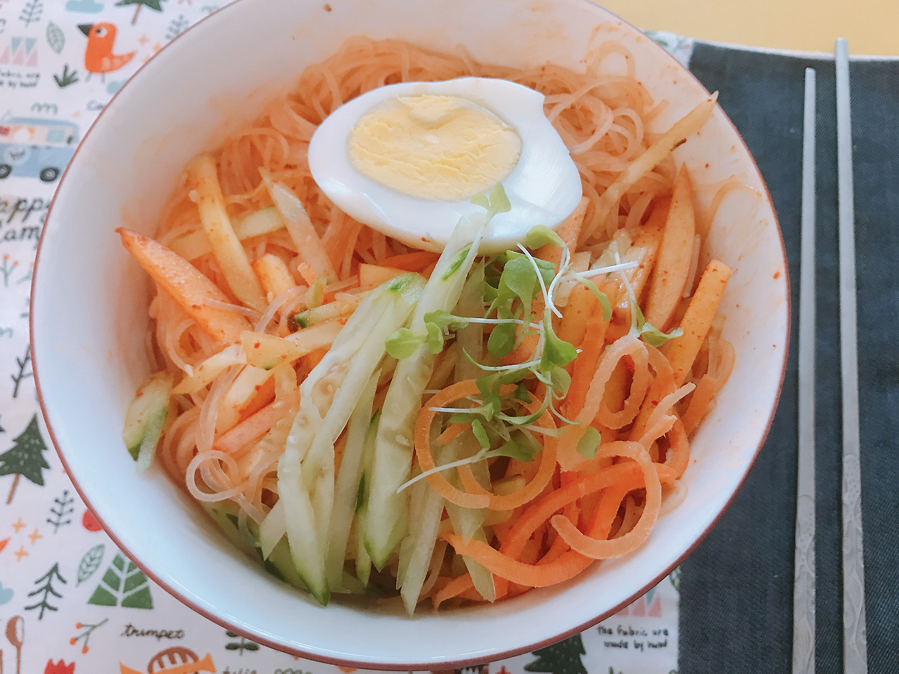 점심에 면을 먹기로 하였으니 비빔면 위에 살짝 올려 주었다.