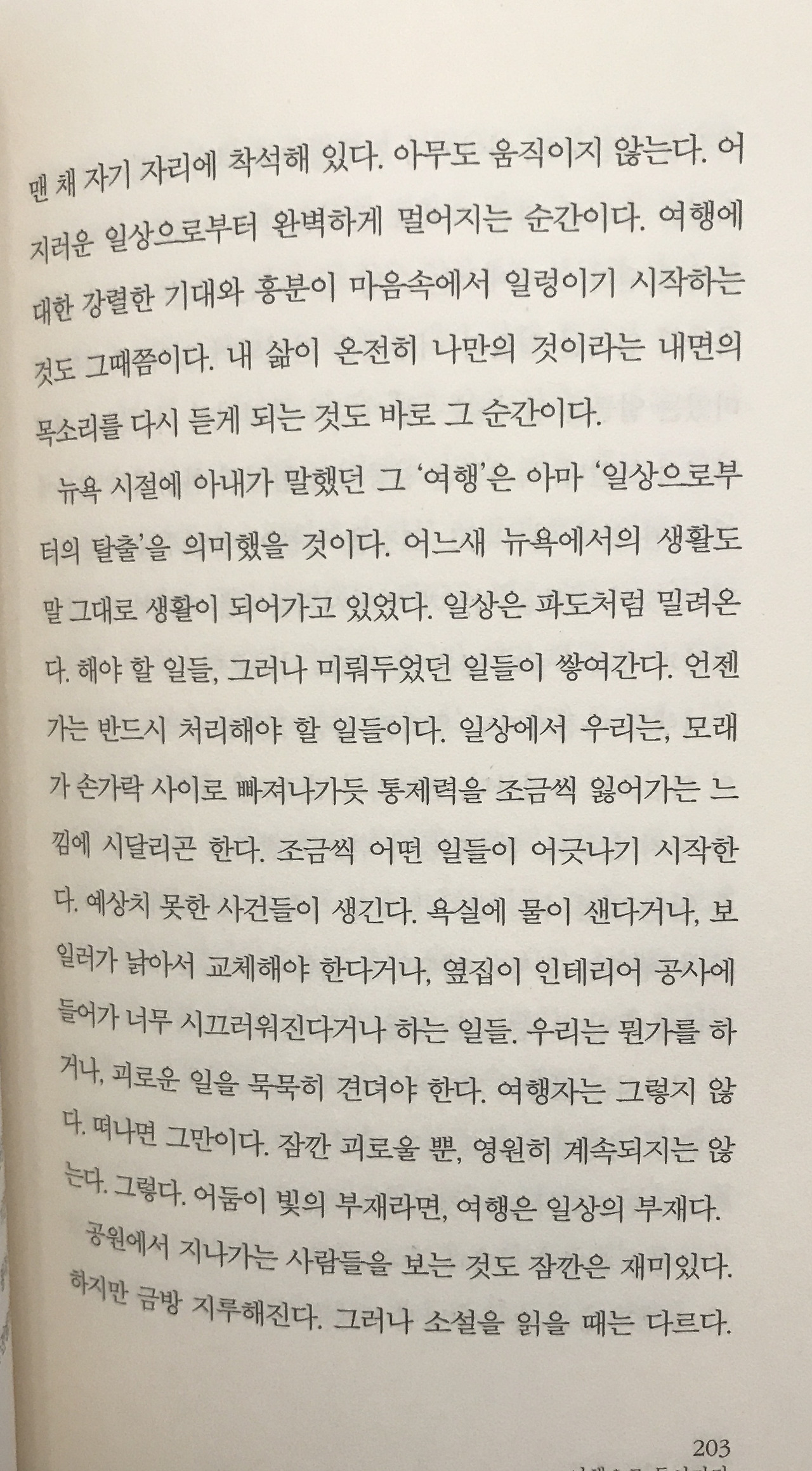 "어둠이 빛의 부재라면, 여행은 일상의 부재다."