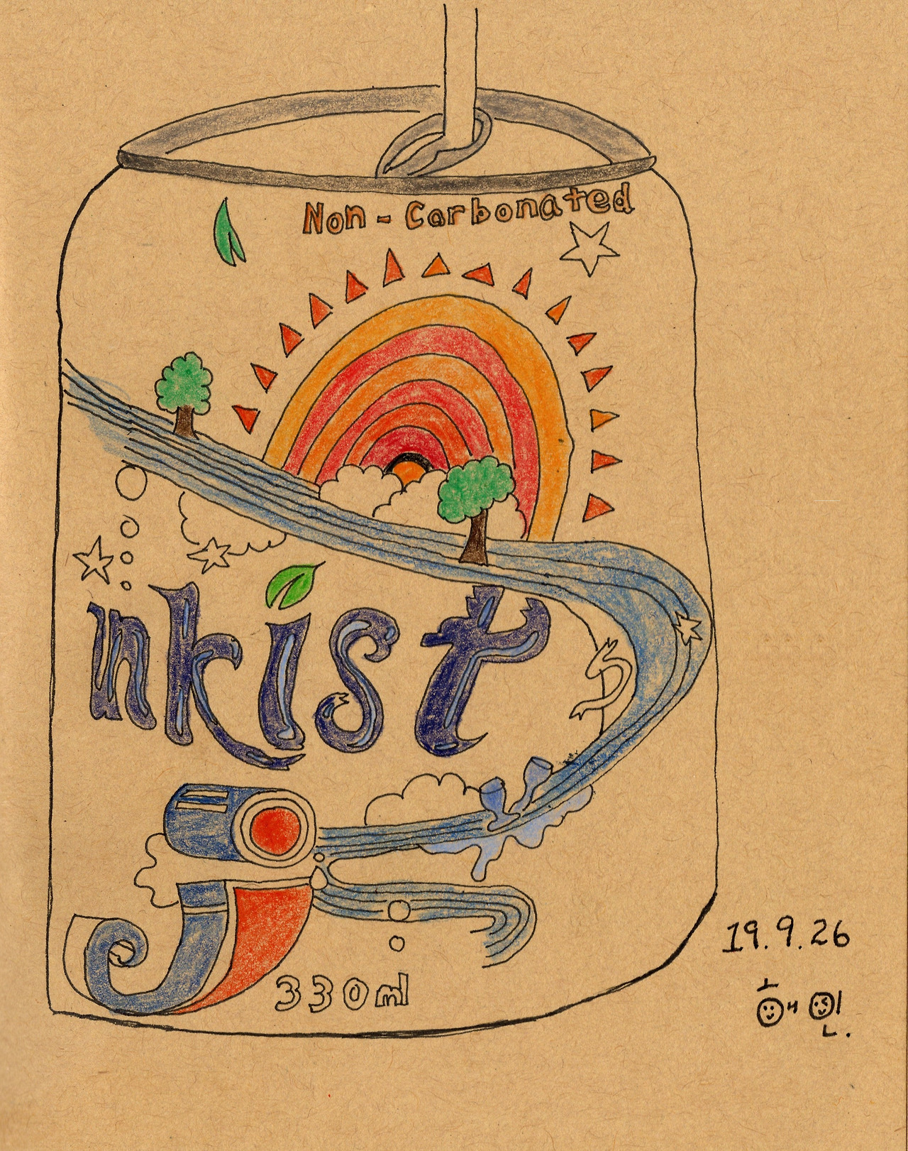 음료수 캔 표면에 OJ라고 쓰인 영문 글자가 보였다.