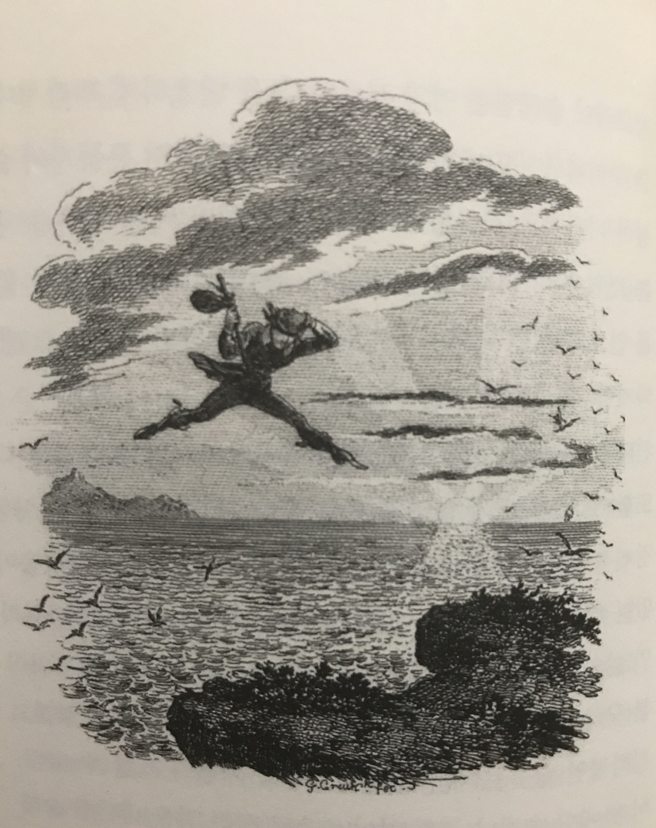슐레밀은 돈도 없이 그림자도 없이 혼자만의 여행을 계속한다. 밑창이 떨어진 장화 대신 새로운 장화를 사려하지만 비싸서 포기하려다가 금발의 곱슬머리 소년으로부터 낡은 장화를 산다. 그 장화를 신고 걷자 숲, 평야, 모래사막 등이 번갈아 나타나는 경험을 하게 된다. 그 장화는 한 걸음으로 7마일(11.2km)을 나는 신기한 장화였던 것이다.